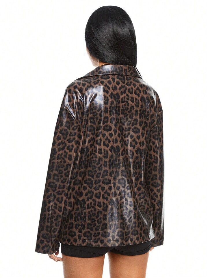 Grunge Punk Giacca casual da donna con stampa leopardata, con bottoni anteriori e maniche lunghe