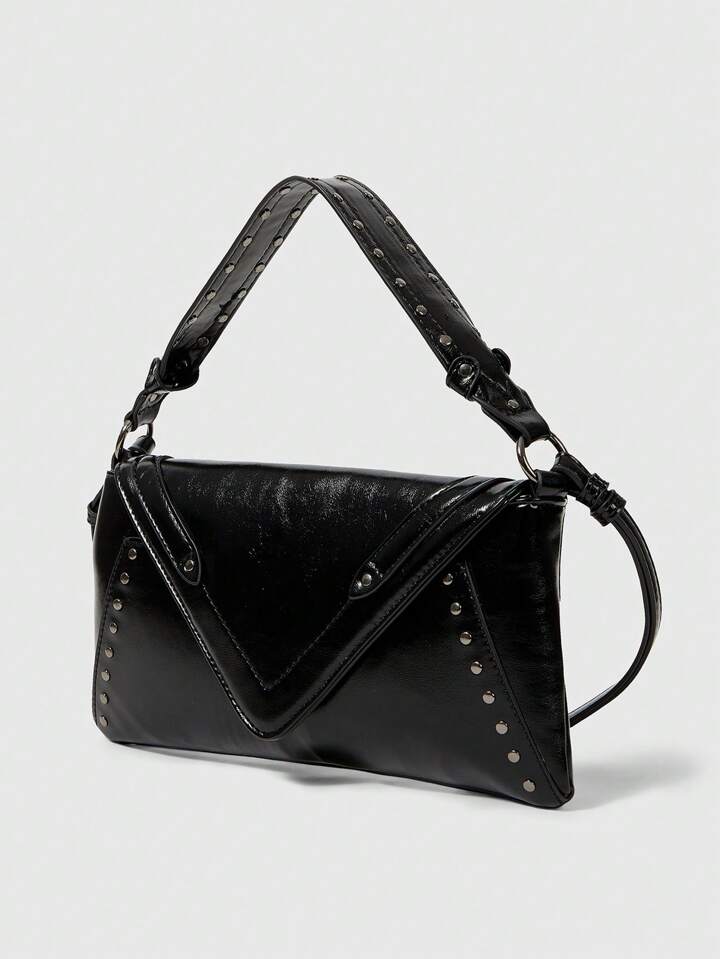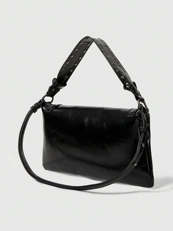 Grunge Punk Borsa a spalla semplice di colore unito da donna, borsa casual da uso quotidiano
