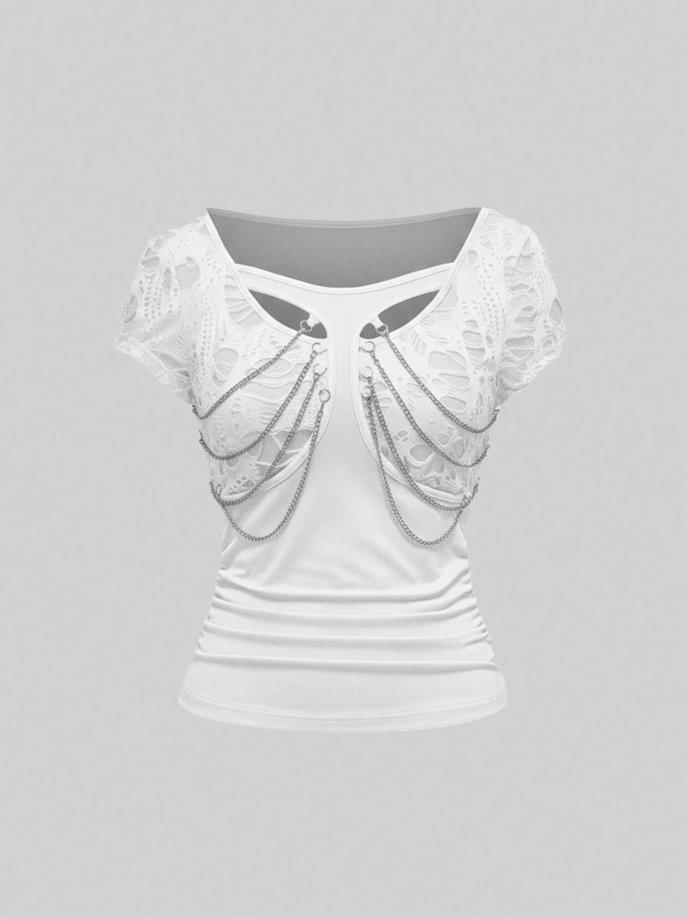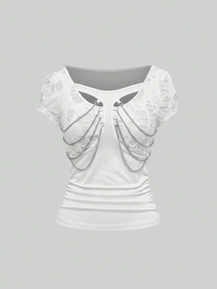 Grunge Punk Maglietta da con design plissettato e catena punk