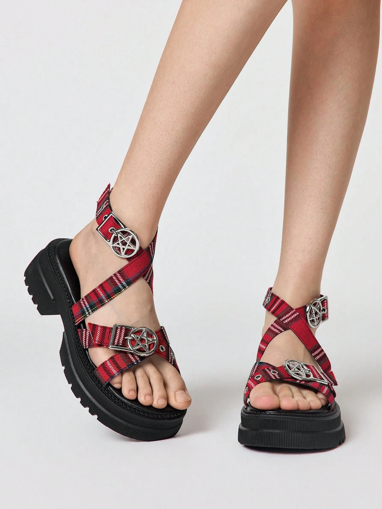 Grunge Punk Sandali da spiaggia neri alla romana da donna, sandali punk rock con catena scura per feste, sandali estivi con zeppa e punta aperta, con borchie, stile gotico, scarpe da vacanza