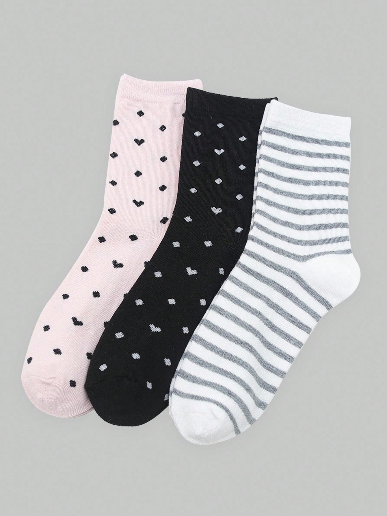 Grunge Punk Calze a metà polpaccio da donna casual e versatili per uso quotidiano, con motivi a righe e a cuore