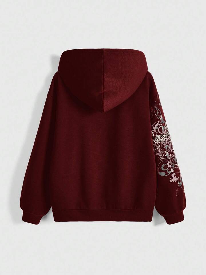 Grunge Punk Felpa con cappuccio da donna con stampa a croce e ali
