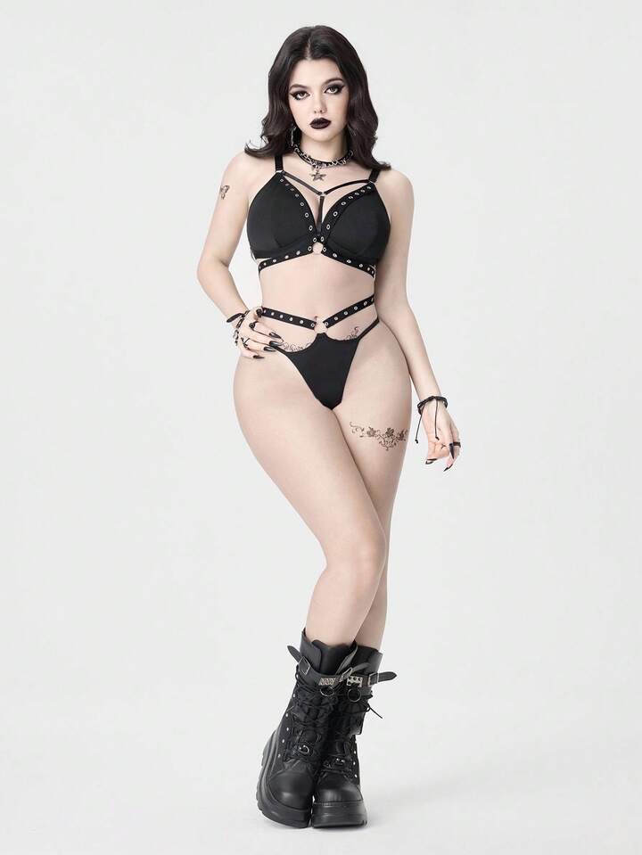 Grunge Punk Set di lingerie da donna con corpetto e perizoma, in stile dark punk per festival musicali