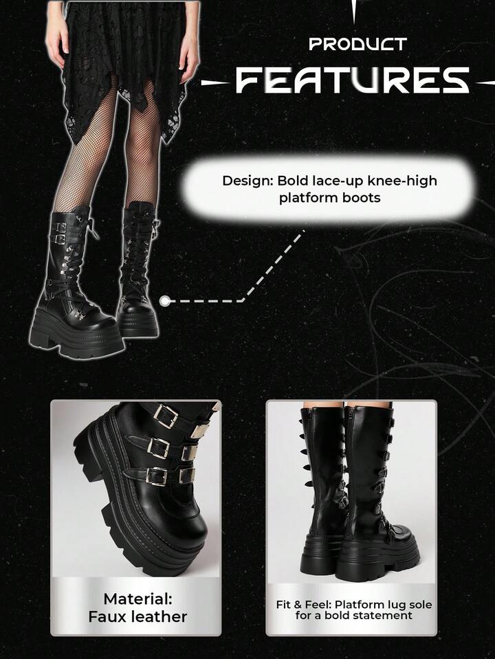 Grunge Punk Stivali da donna in stile dark rock, punk, gotico, adatti per Ognissanti