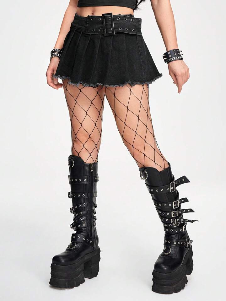 Minigonna di jeans con pieghe e orlo con frange per donne in estate