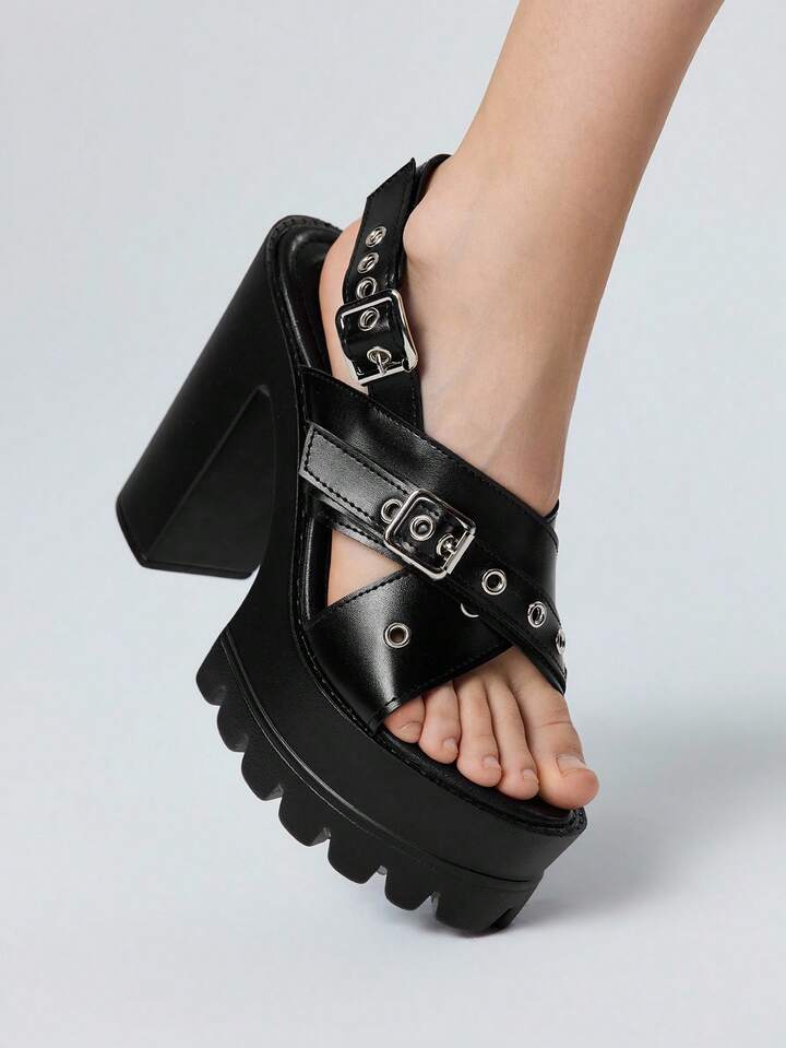 Grunge Punk Eleganti e alla moda pumps casual da donna con punta tonda e tacco largo, sandali stile punk goth romano adatti per feste, uso quotidiano, eventi formali, con effetto di aumento dell'altezza e allungamento delle gambe, tacchi alti comodi e versatili
