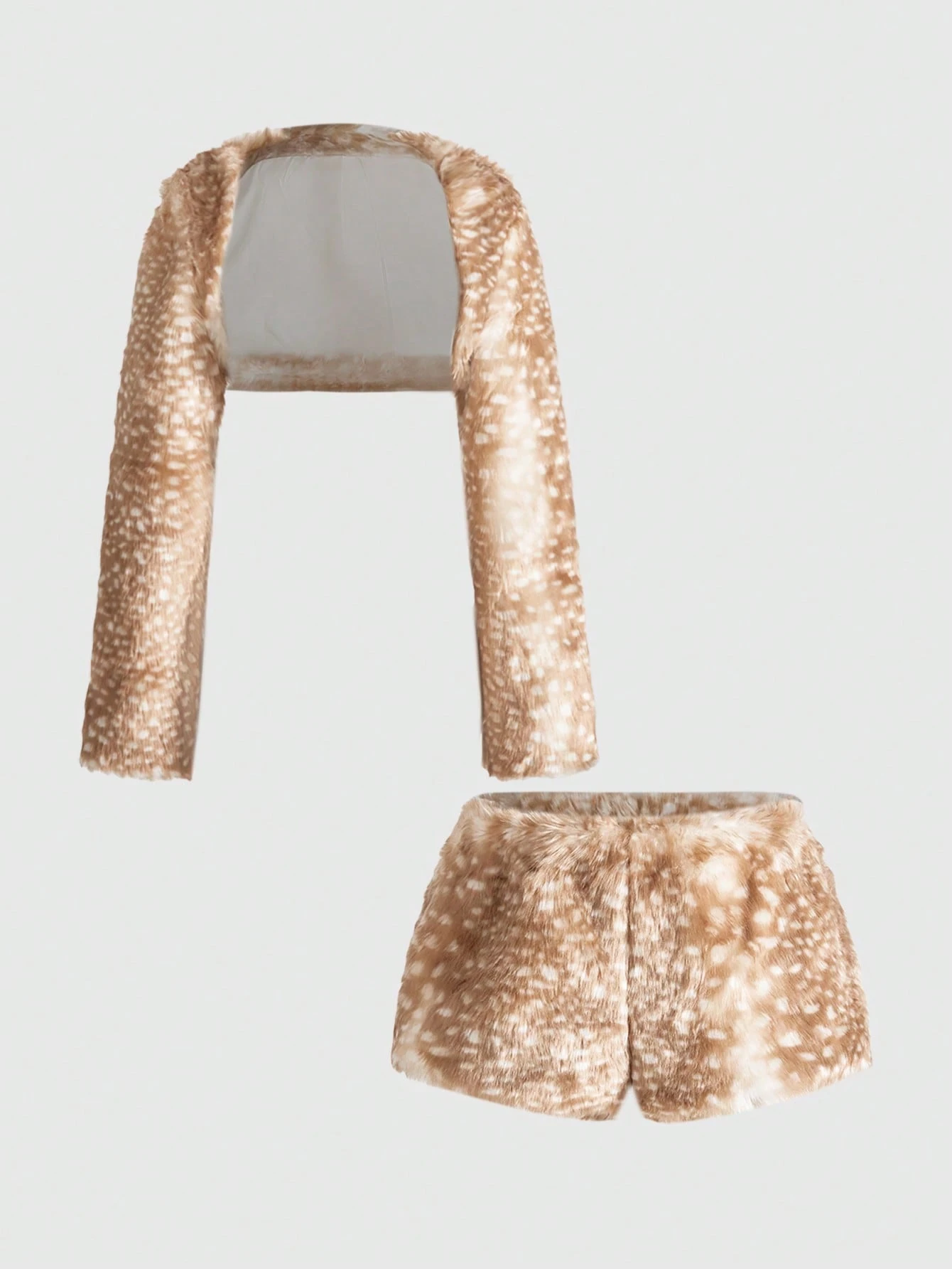 Grunge Punk Set da donna composto da giacca e pantaloncini in pelliccia sintetica alla moda