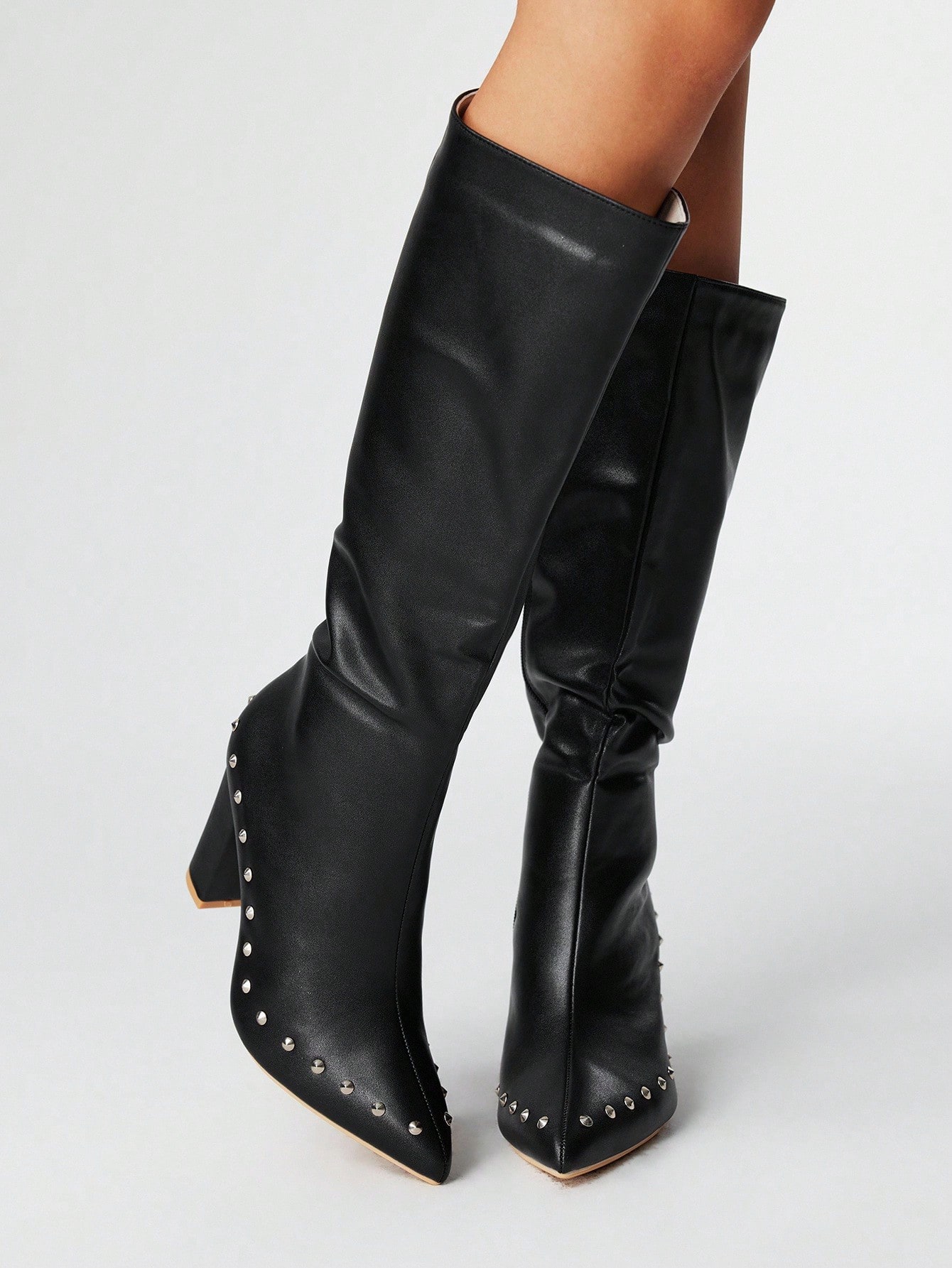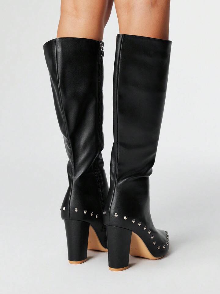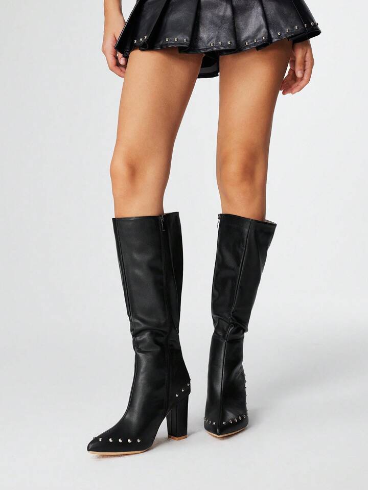 Grunge Punk Stivali con tacco alto da donna, eleganti e versatili con punta affusolata, realizzati in PU con tacco spesso, adatti per l'autunno/inverno