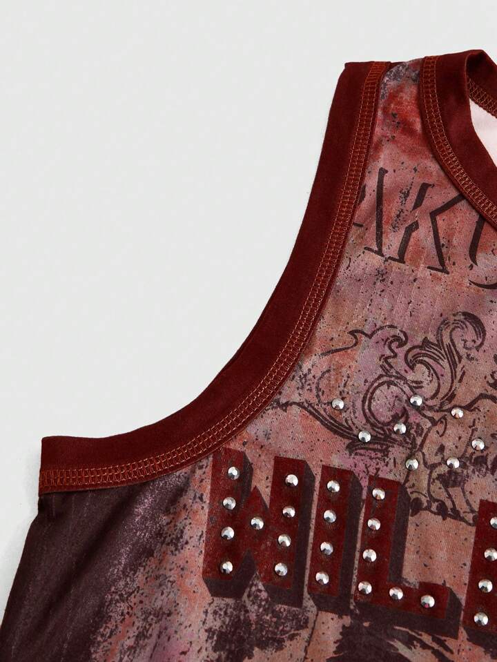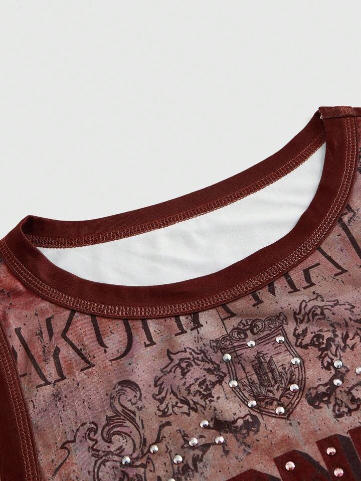 Grunge Punk Canotta di moda con stampa di lettere e numeri stile Kpop Y2K, scollo a ciurillo, per donna