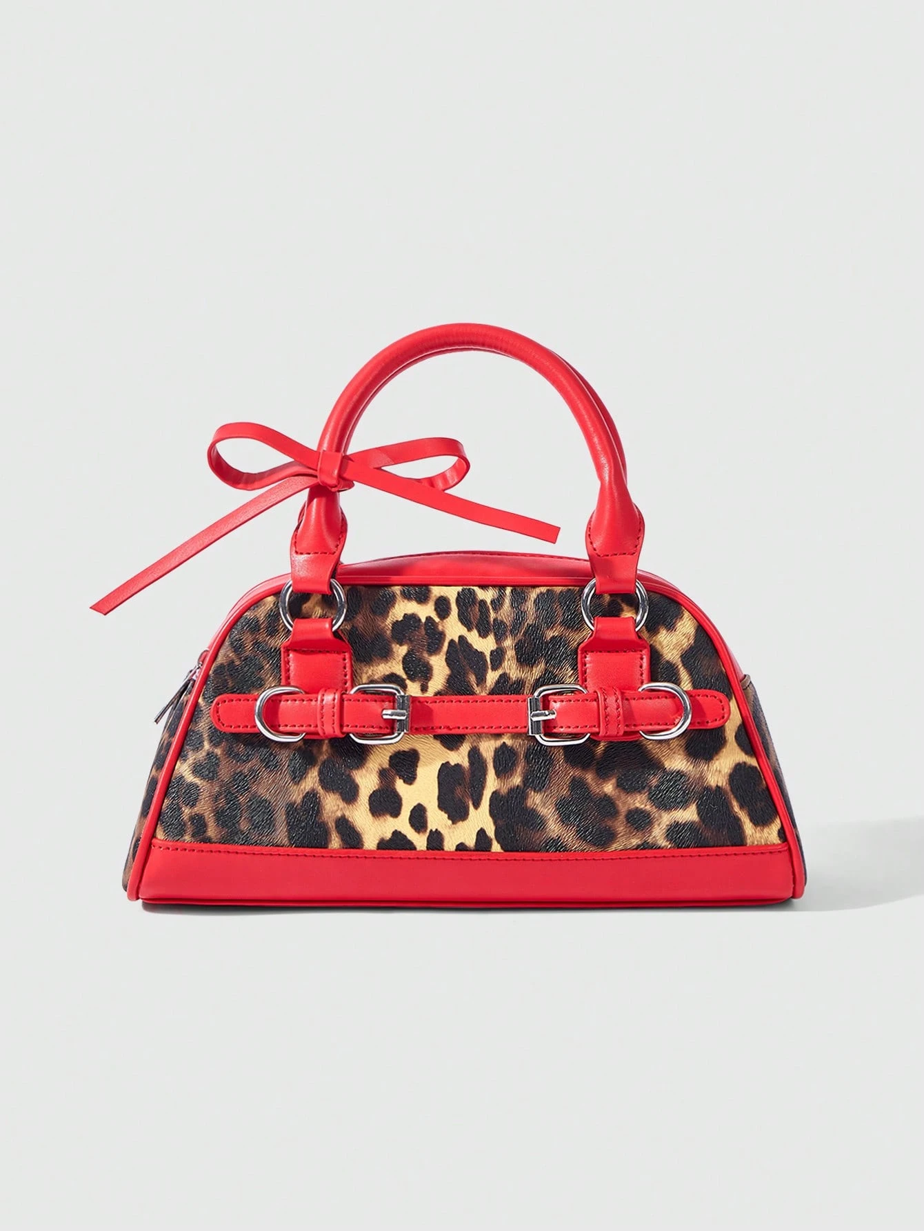 Grunge Punk Borsa a tracolla casual da donna con motivo leopardato e fibbia