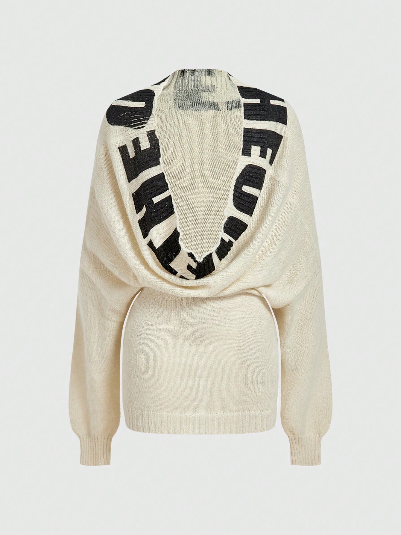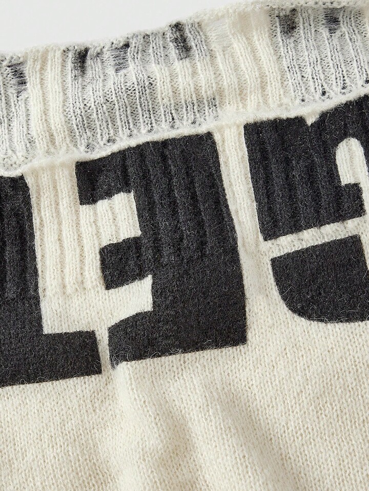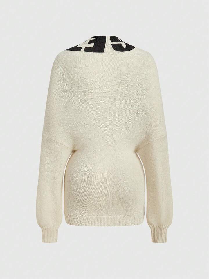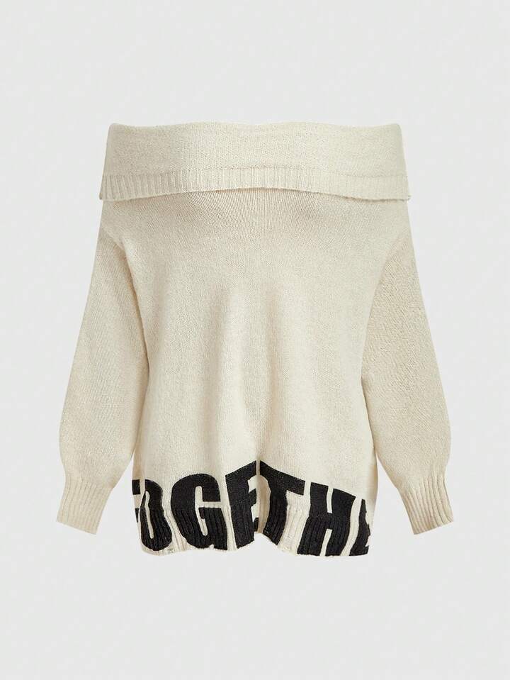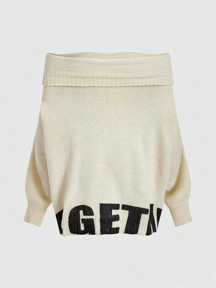 Grunge Punk Maglione alla moda con maniche lunghe e spalle scoperte, con motivo a lettere, ampio