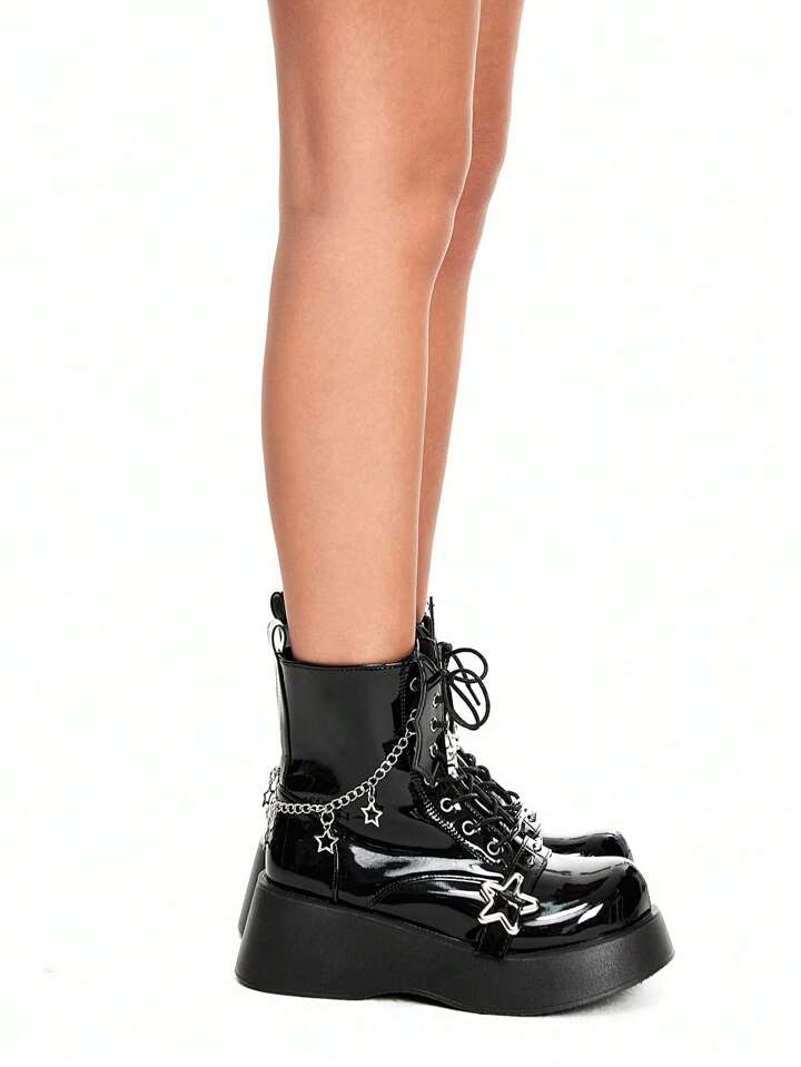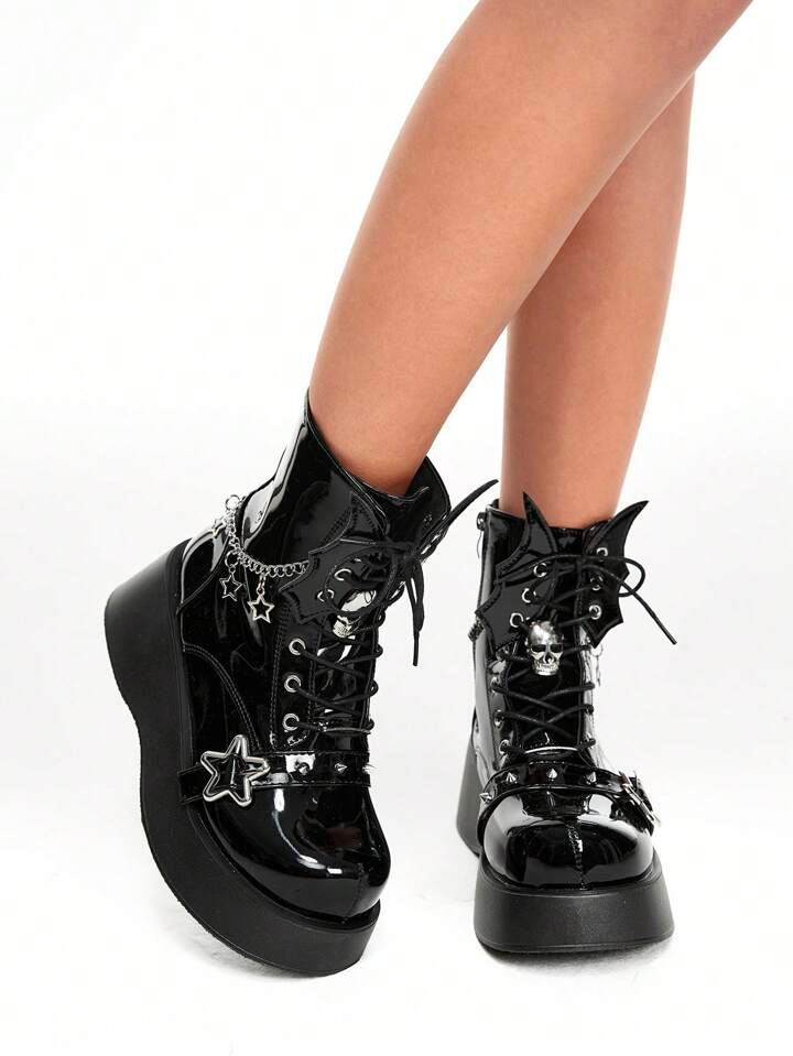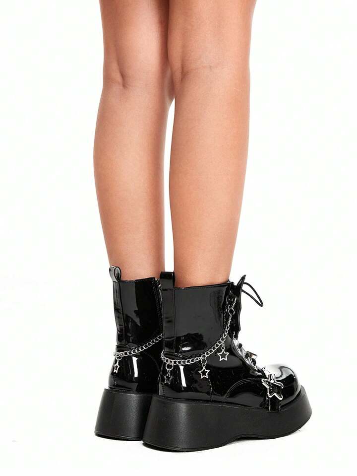 Grunge Punk Stivali corti da donna in stile punk con plateau in pelle verniciata