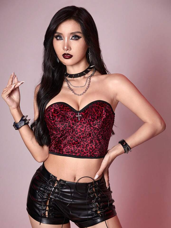 Grunge Punk Top Di Peluche Tubolare A Stampa Leopardata Rossa Da Donna