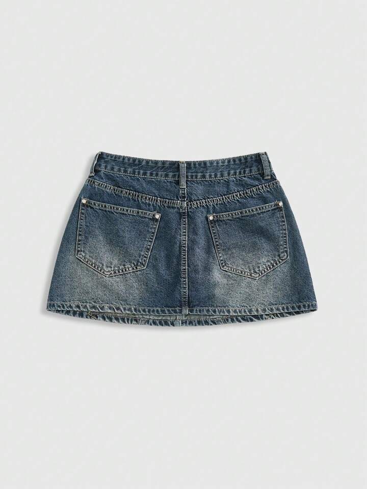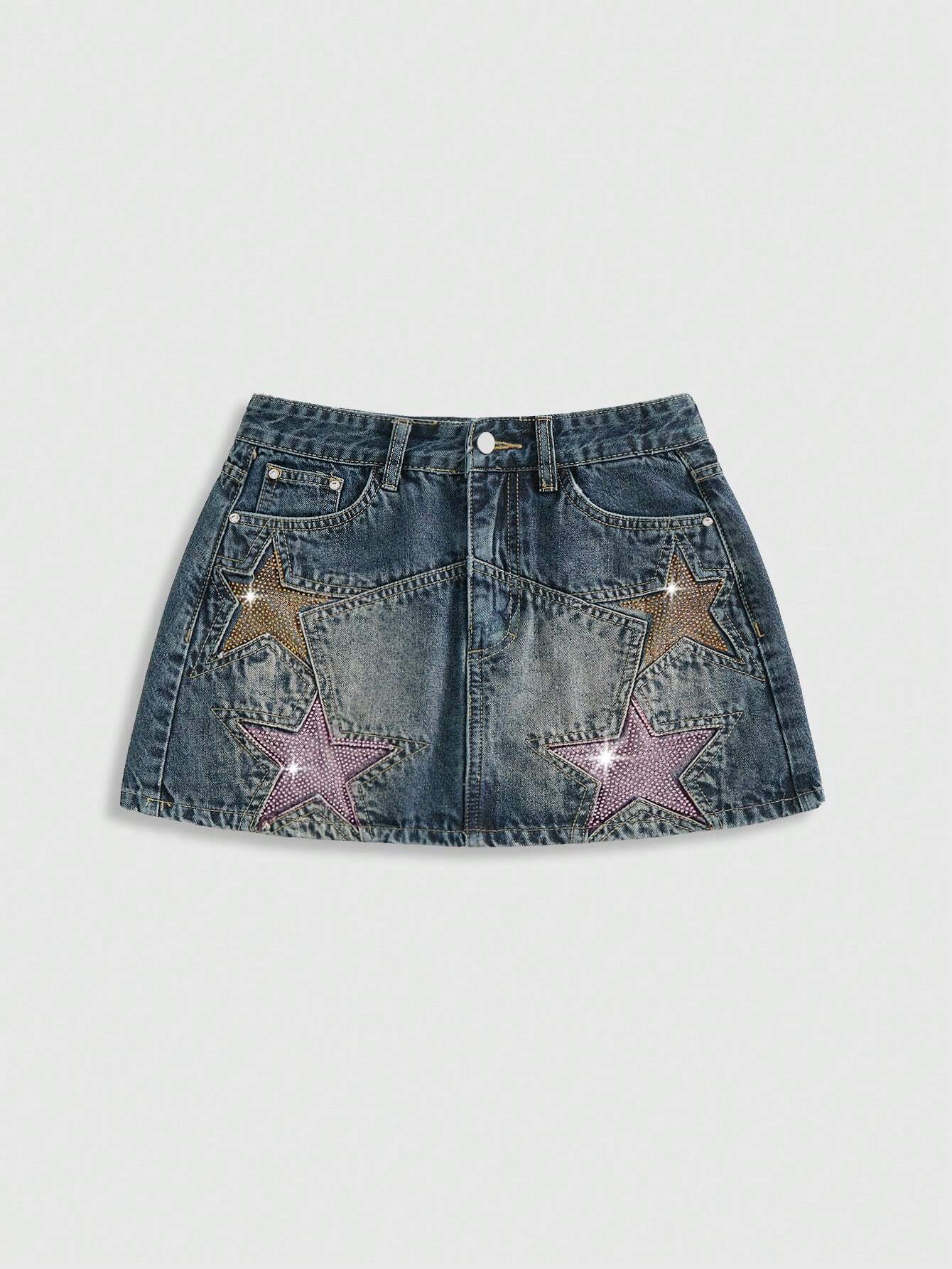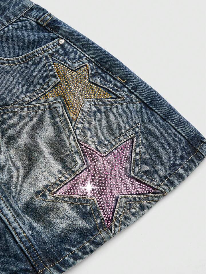 Grunge Punk Minigonna di jeans con decorazioni in strass a forma di stella per donna