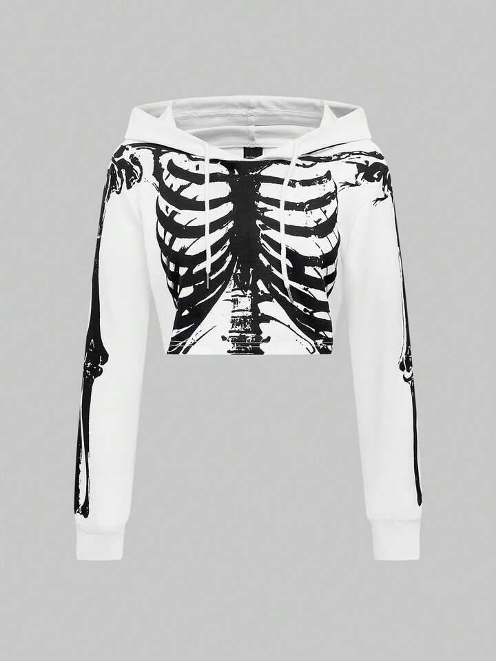 Grunge Punk Felpa con cappuccio da donna con grafica scheletro
