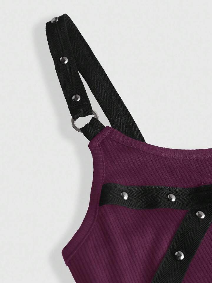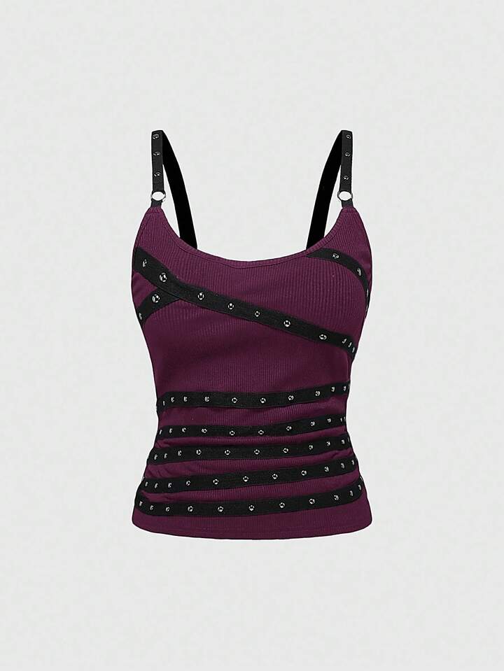 Grunge Punk Canotta da donna senza maniche, sexy e con schiena scoperta, con spalline a spaghetti, decorata con strass, adatta per l estate, spiaggia, laurea, Pasqua, concerti, vacanze a Nashville, festival musicali, rock