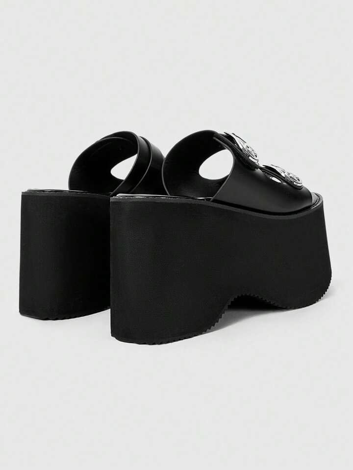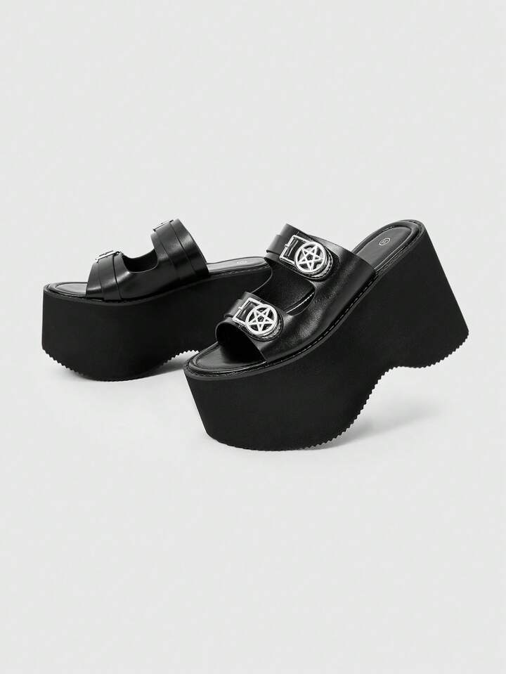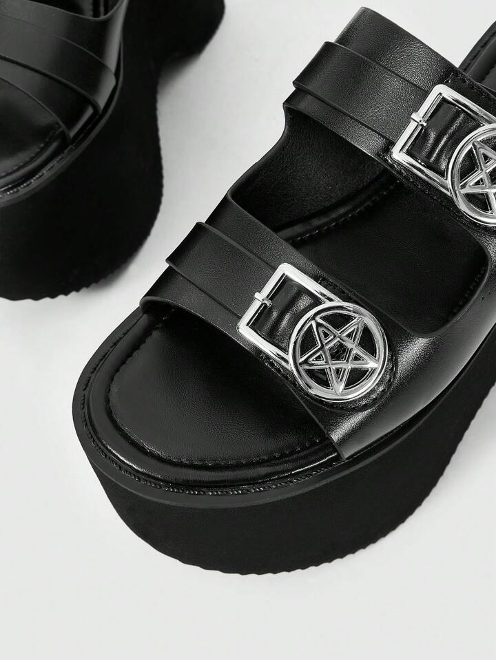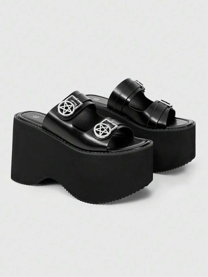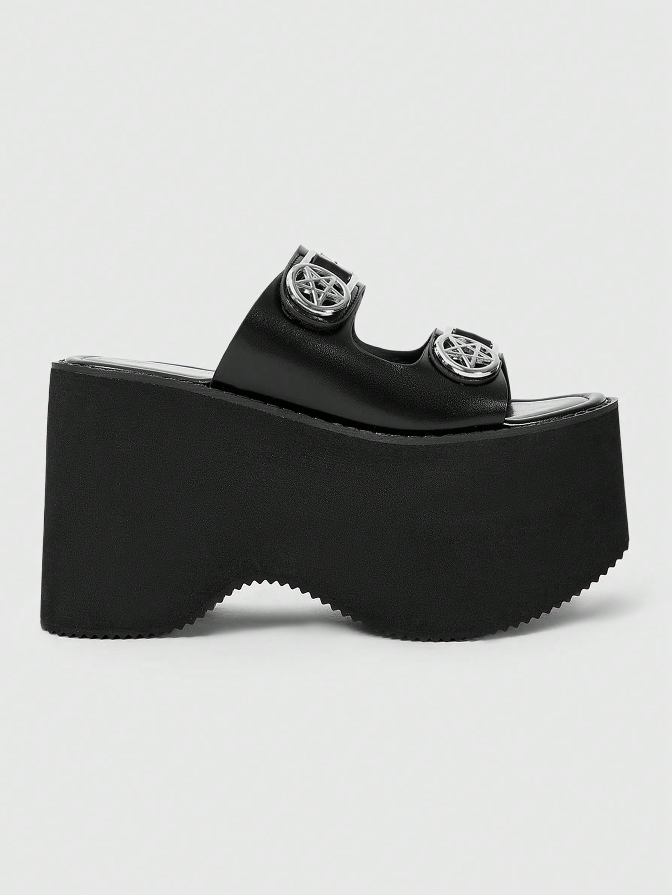 Grunge Punk Sandali alla moda da donna con suola spessa e tacco molto alto, con cinturino singolo traforato a forma di stella e punta aperta