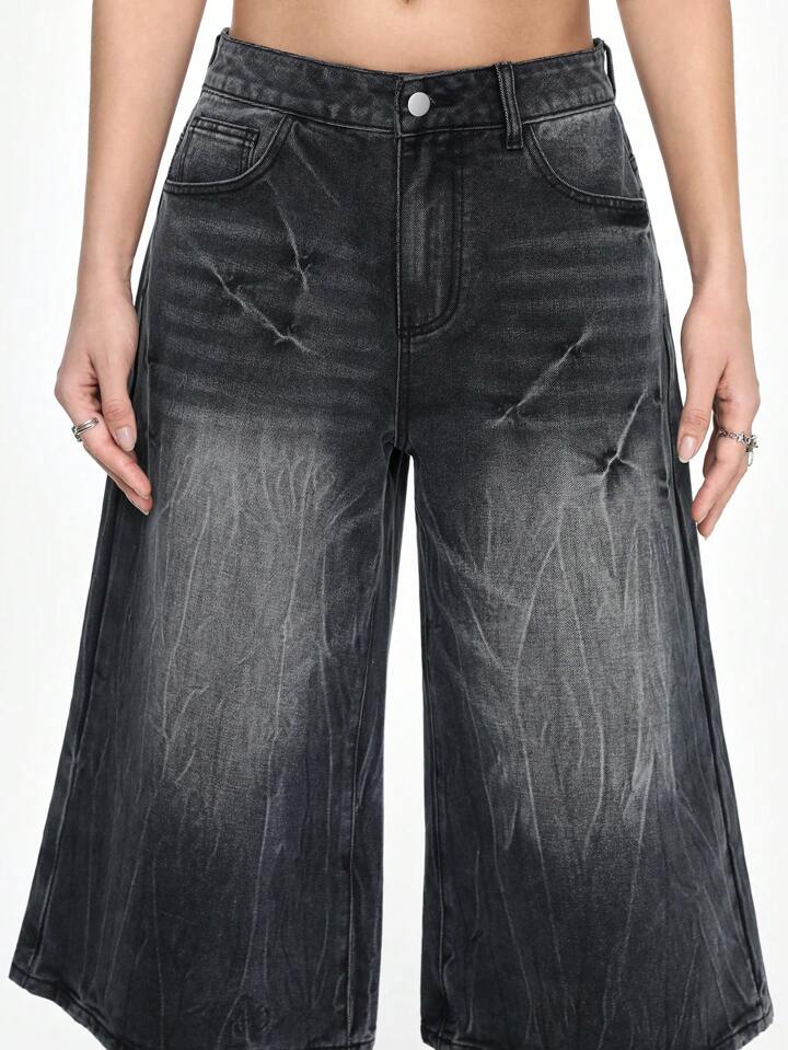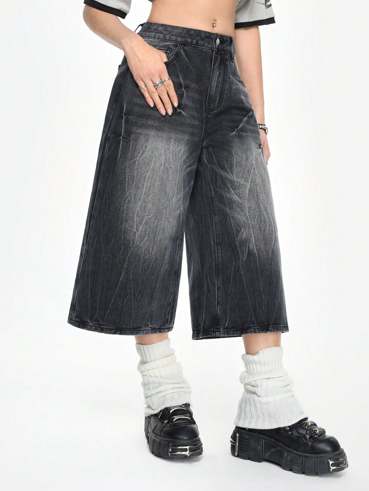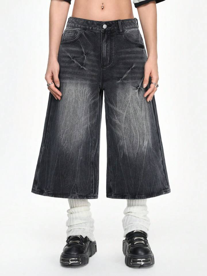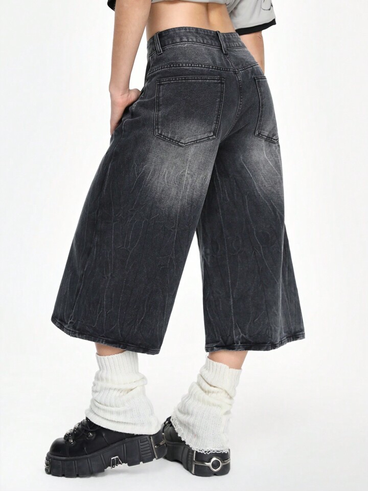 Grunge Punk Jeans cropped donna in stile Y2K, vita bassa, extra ampi, effetto slavato e consumato, stile streetwear