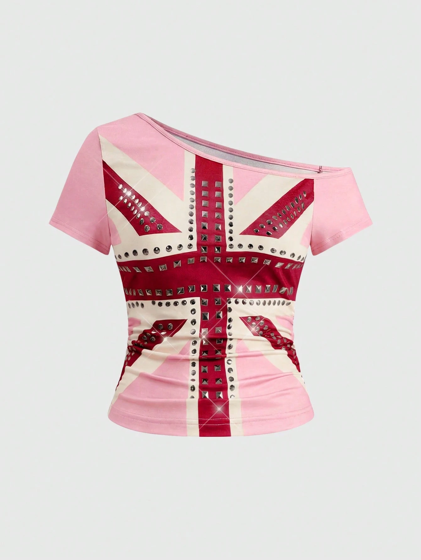 Grunge Punk Maglietta aderente a maniche corte con stampa retrò della bandiera britannica, strass e borchie, stile Y2K