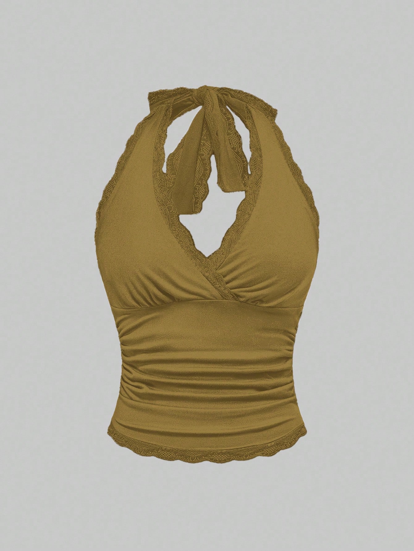 Grunge Punk Top senza schienale con collo alto e bordo in pizzo, colore unito, stile Y2K per donne