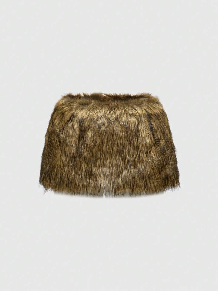 Grunge Punk Minigonna corta in eco-pelliccia, in stile Y2K Baddie, a vita super bassa