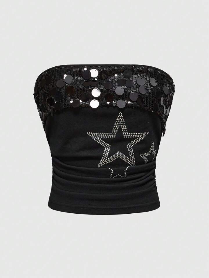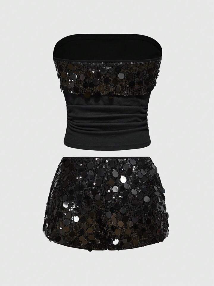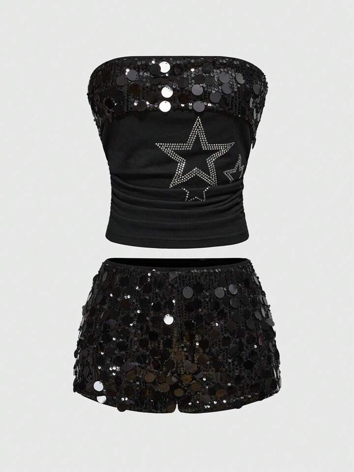 Grunge Punk Set da 2 pezzi di outfit da festa in materiale con perline e paillettes, stile Y2K per donna