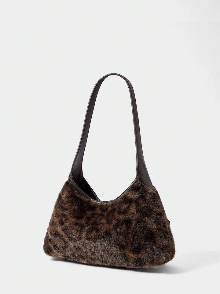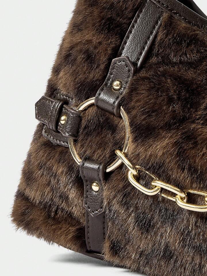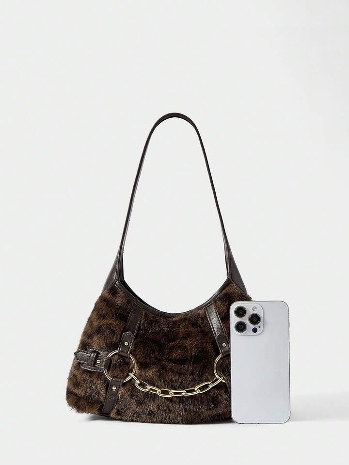 Grunge Punk Borsa a spalla in finta pelliccia con dettagli a catena, stile punk gotico, borsa hobo soffice, borsa da passeggio di
