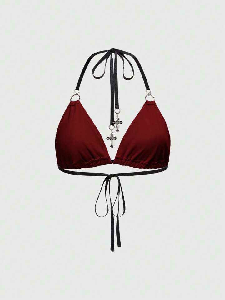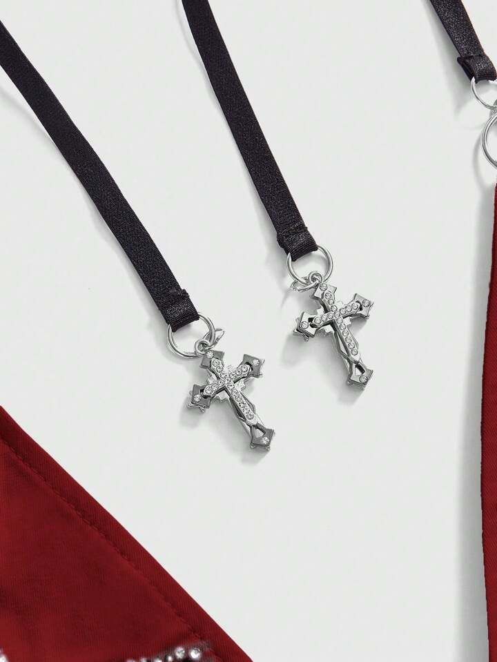 Grunge Punk Bikini rosa con applicazioni in cristallo, stile Y2K, musica anni 2000, rock grunge