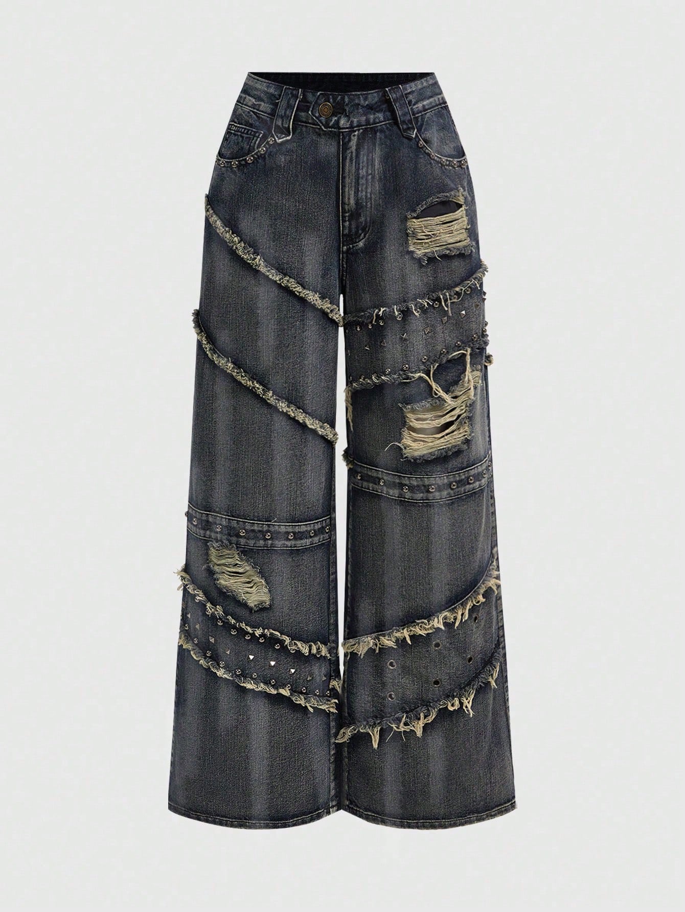 Grunge Punk Jeans vintage lavati ampi con decorazione a rivetti in stile punk Y2K