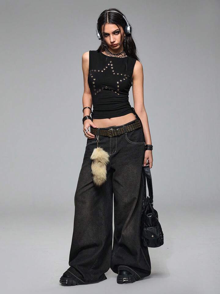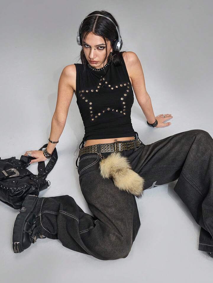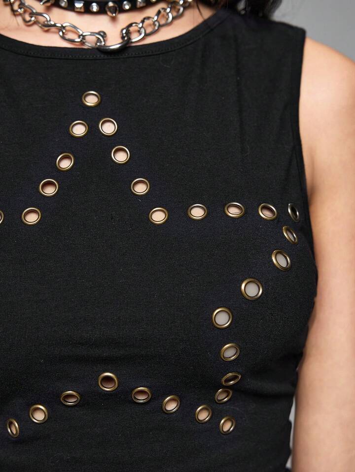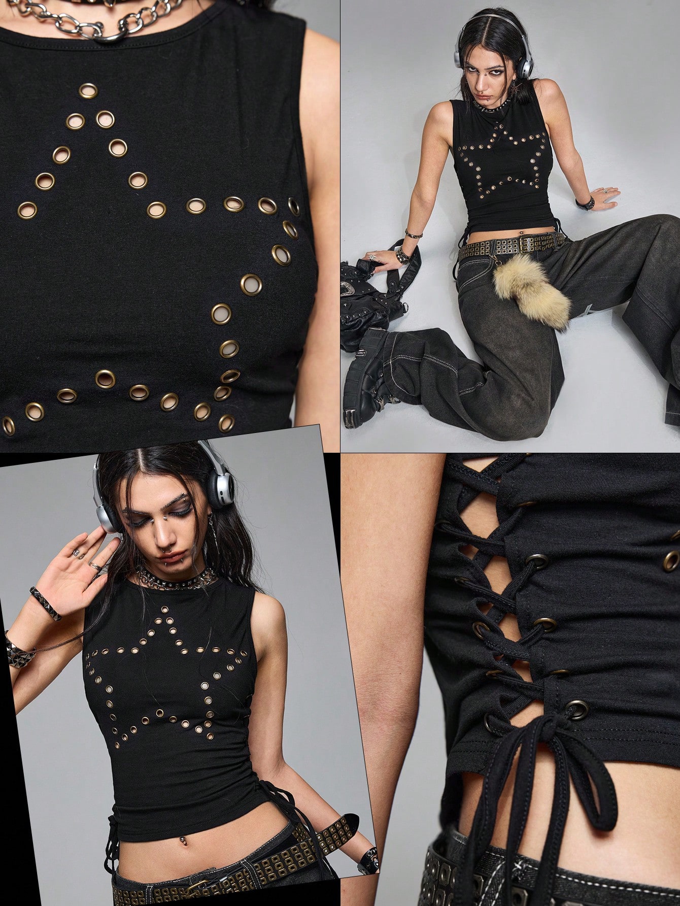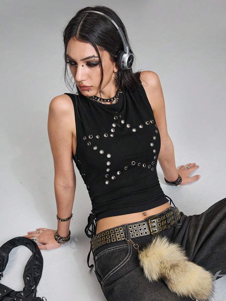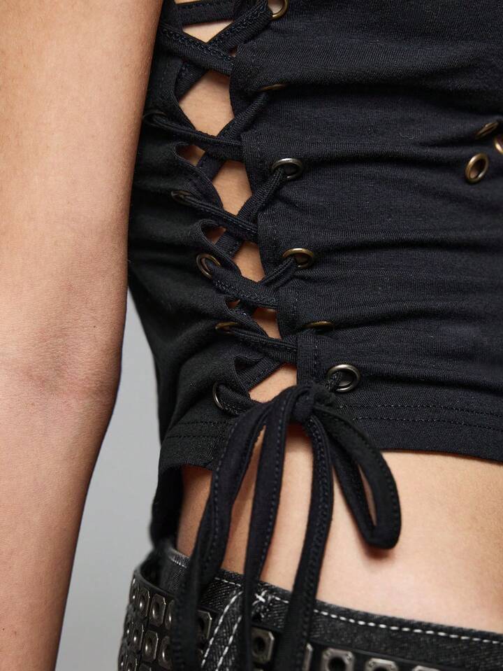 Grunge Punk Canotta da donna aderente con design a occhielli e lacci laterali, stile punk Y2K e sexy, ispirazione K-pop
