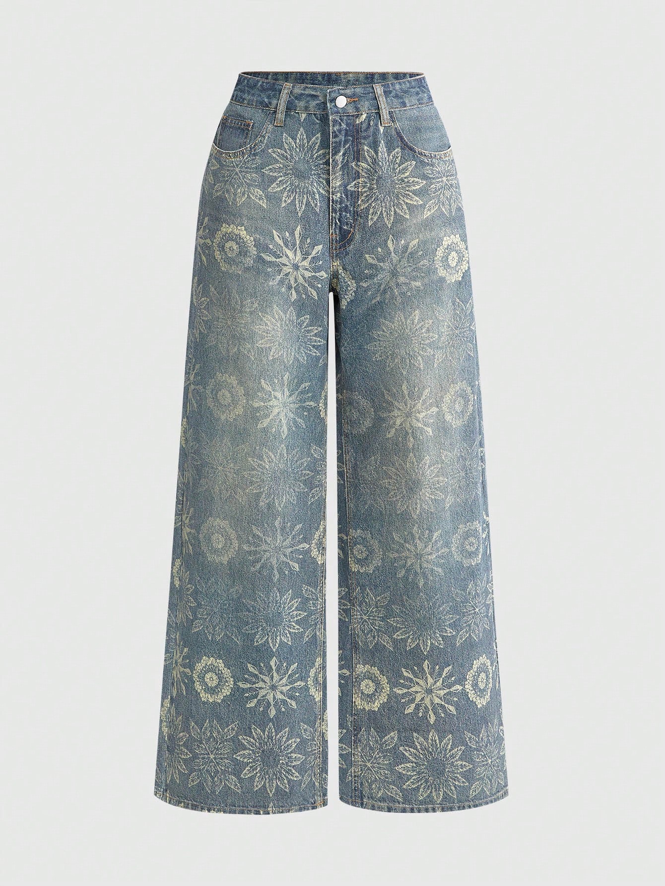 Grunge Punk Jeans a vita bassa, ampi e con gamba larga, con stampa floreale retrò in stile Y2K