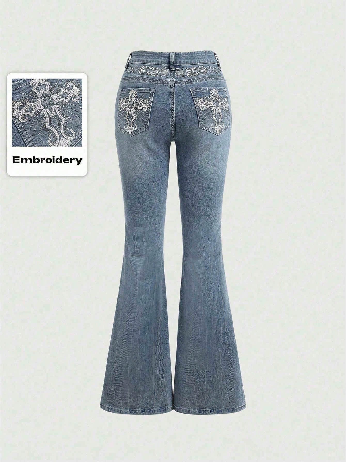 Grunge Punk Jeans a zampa con ricamo di ali e tasche in stile Y2K, retrò, baddie, per donna