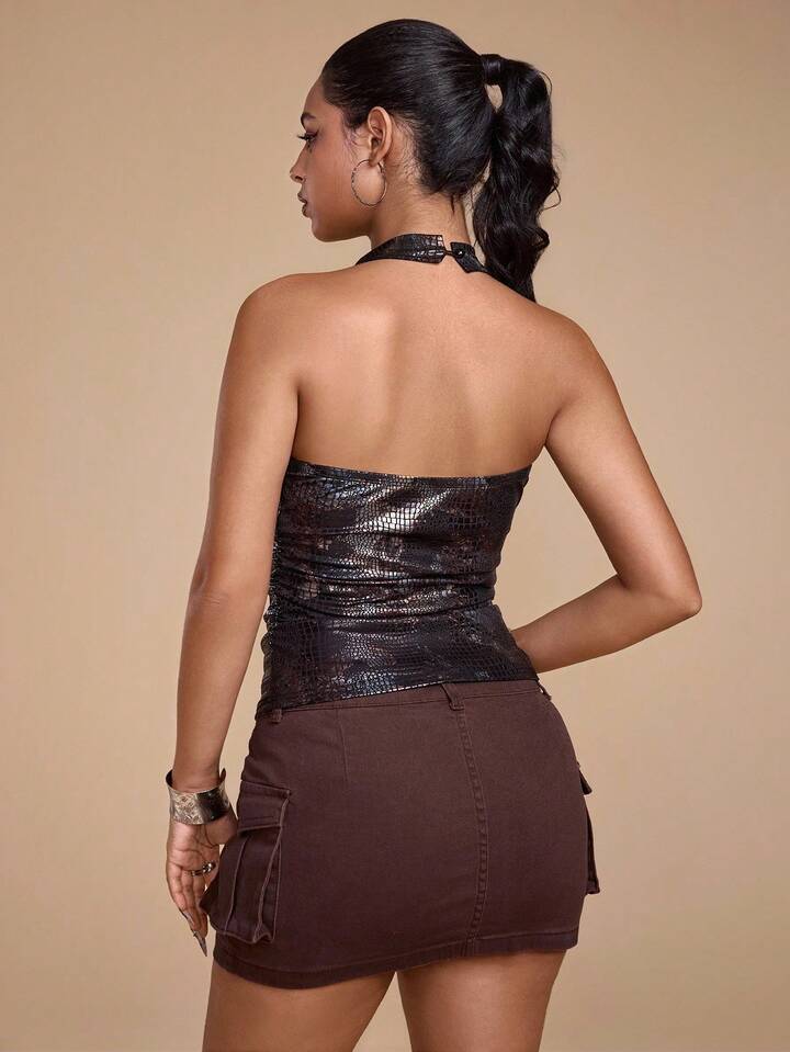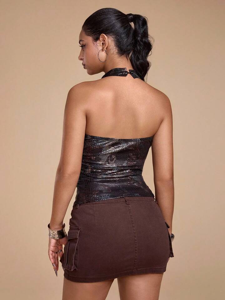 Grunge Punk Top aderente con stampa animalier rivestito, stile retrò Y2K e sexy