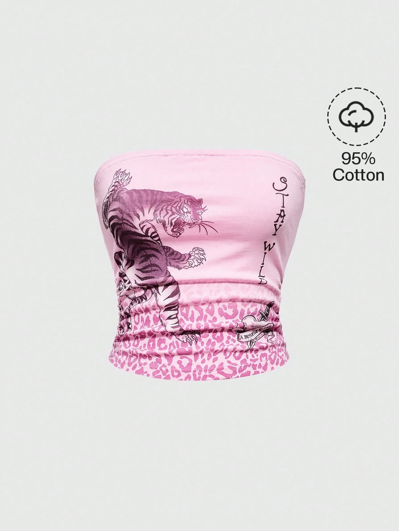 Grunge Punk Top/Bandeau da donna con stampa Y2K retrò sexy di tigre e leopardo