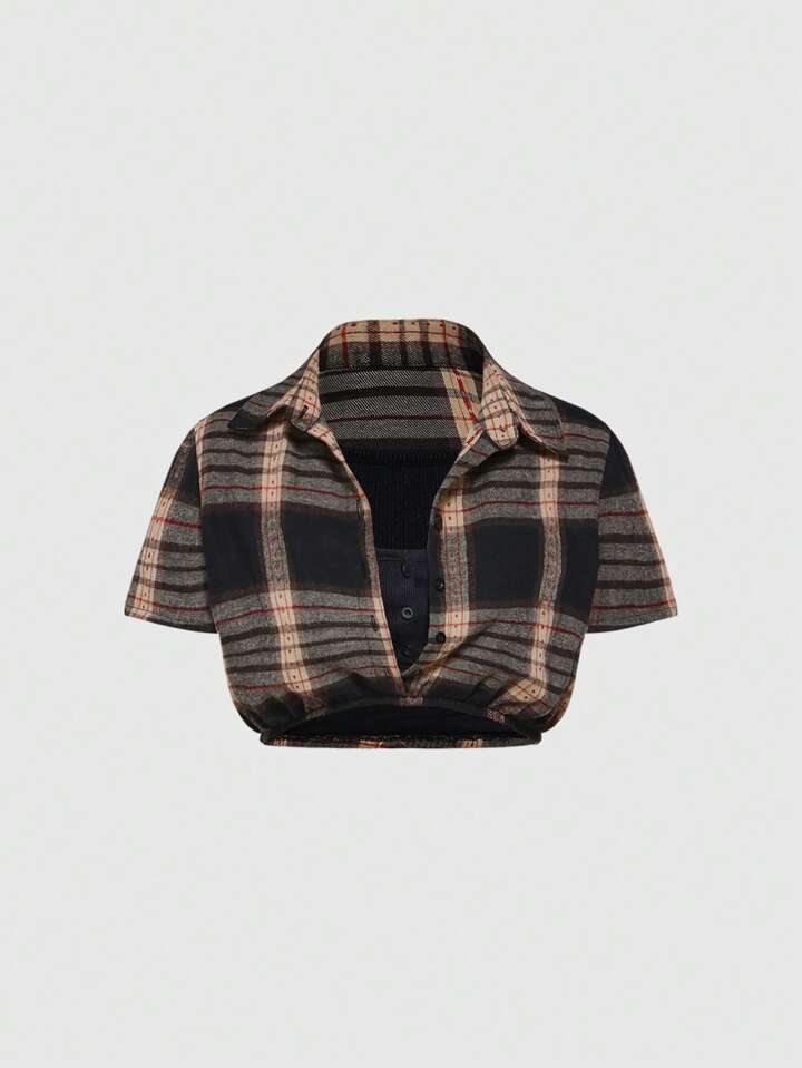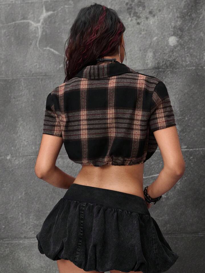 Grunge Punk Camicia corta a quadri stile retrò Y2K streetwear