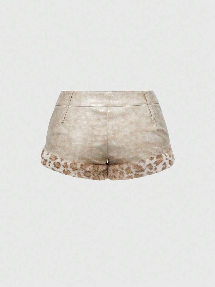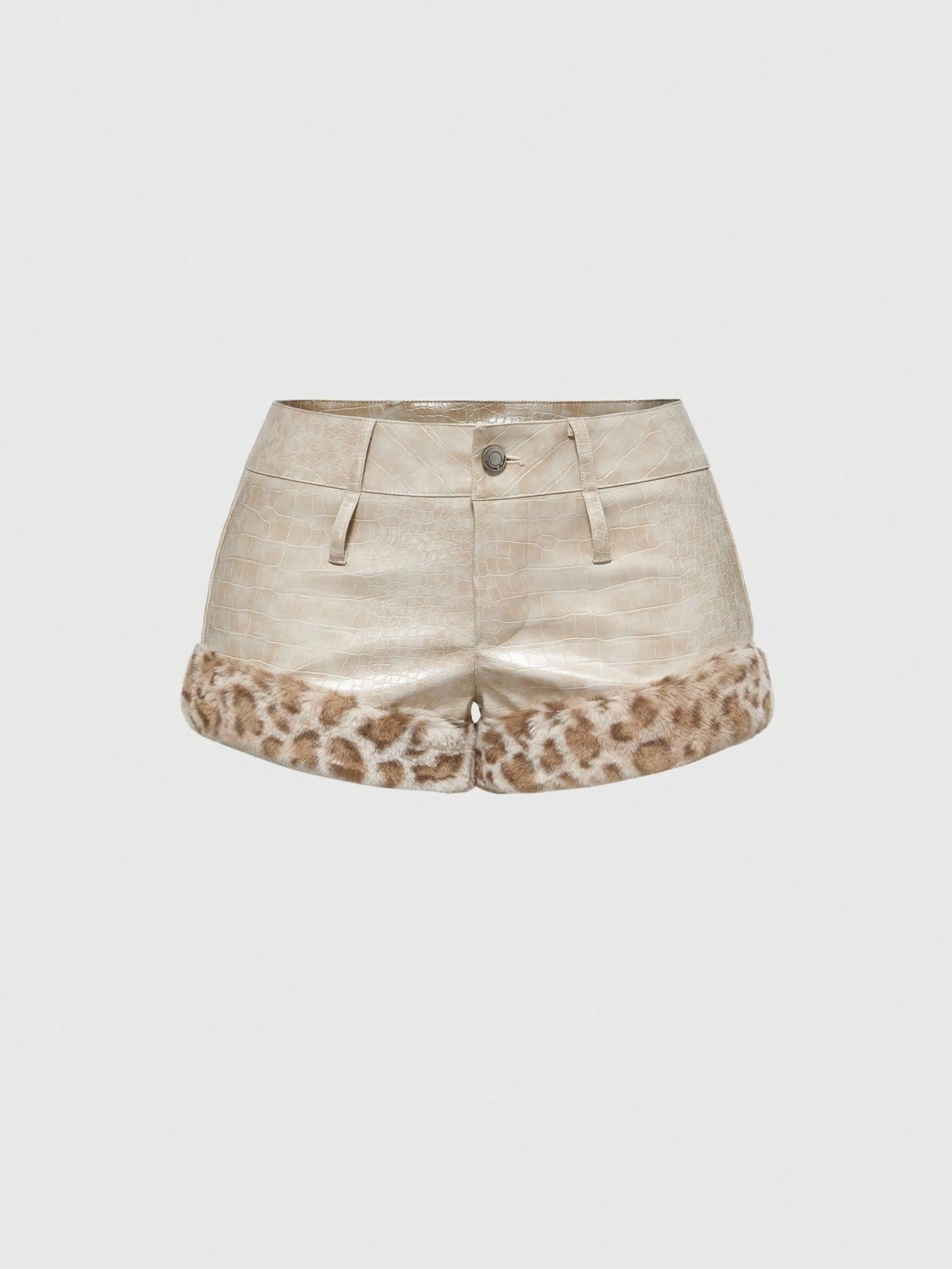 Grunge Punk Pantaloncini mini super a vita bassissima in pelle di coccodrillo e stampa leopardata, stile Y2K sexy
