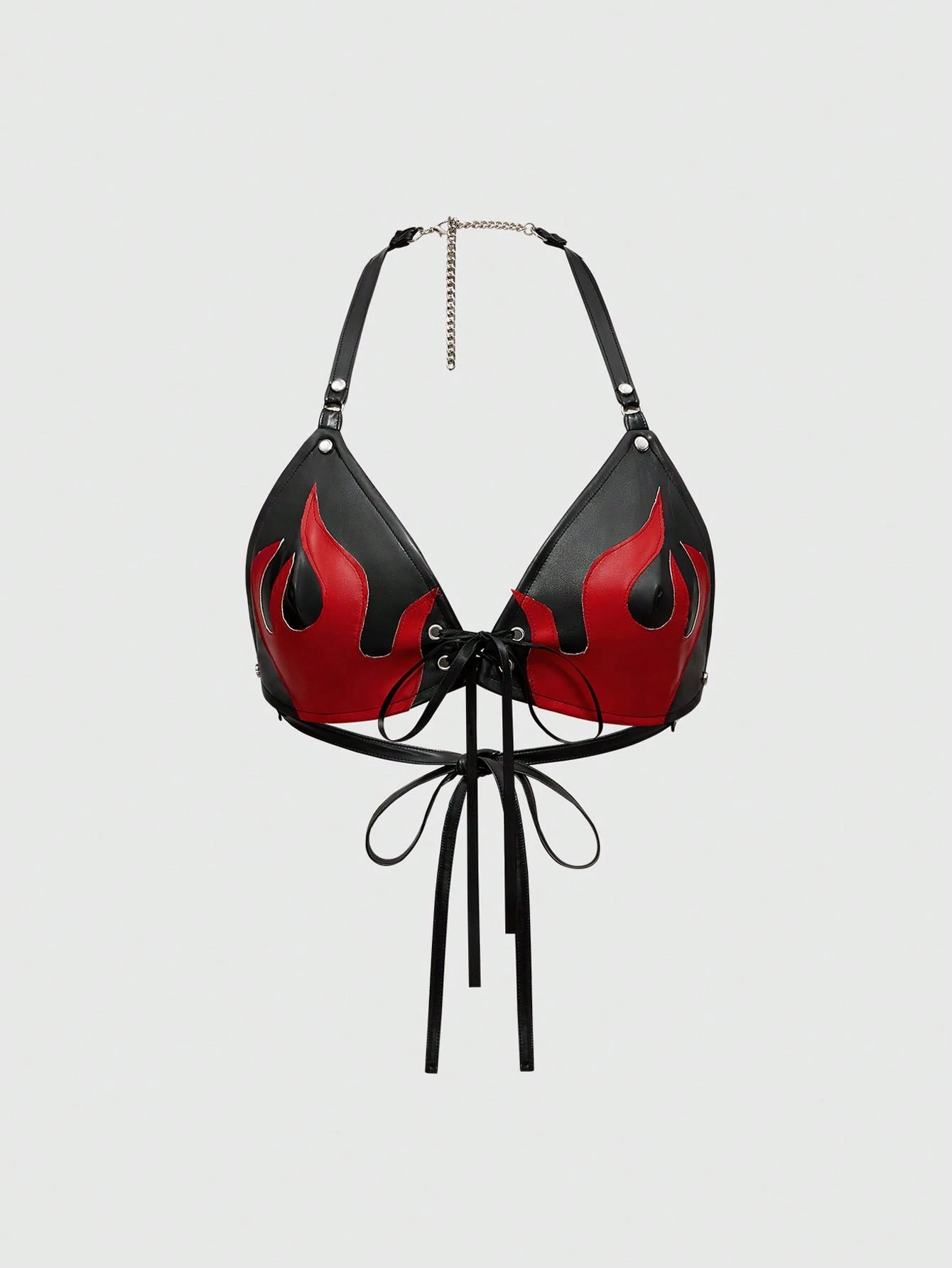 Grunge Punk Canotta bikini aderente in PU con toppe a fiamma, stile Y2K sexy