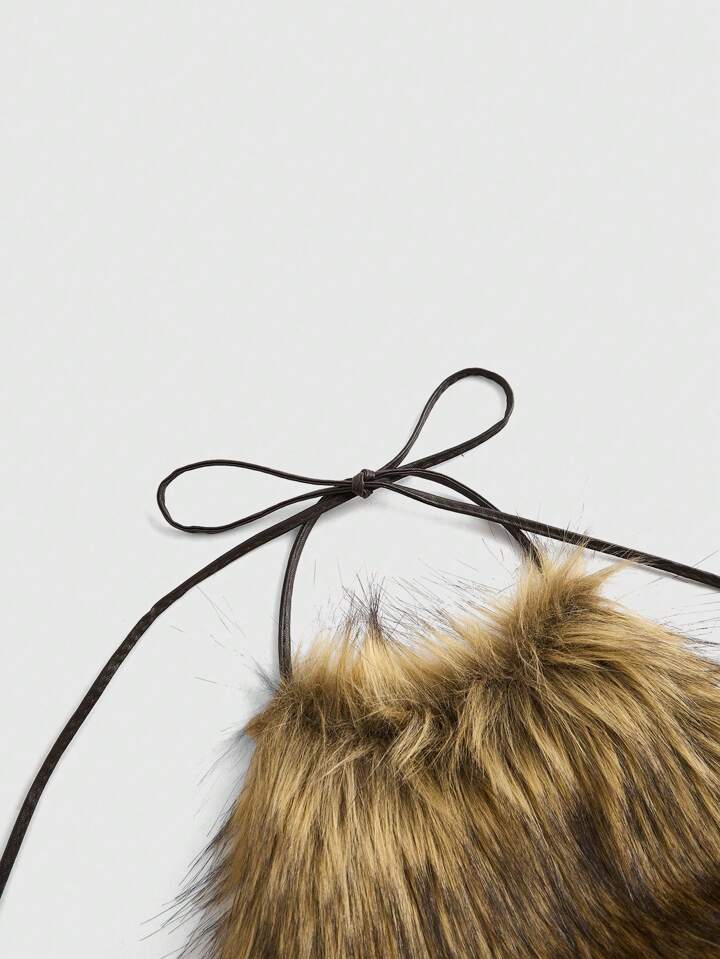 Grunge Punk Crop top in pelliccia sintetica sexy allo stile Y2K, con collo alto e design senza schiena per le donne