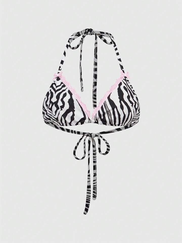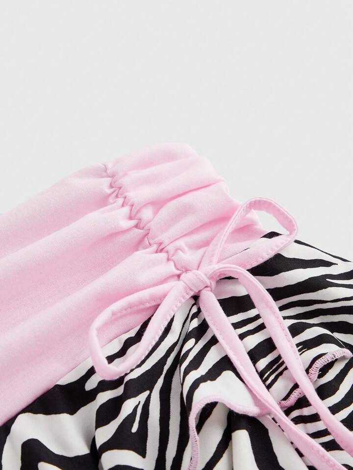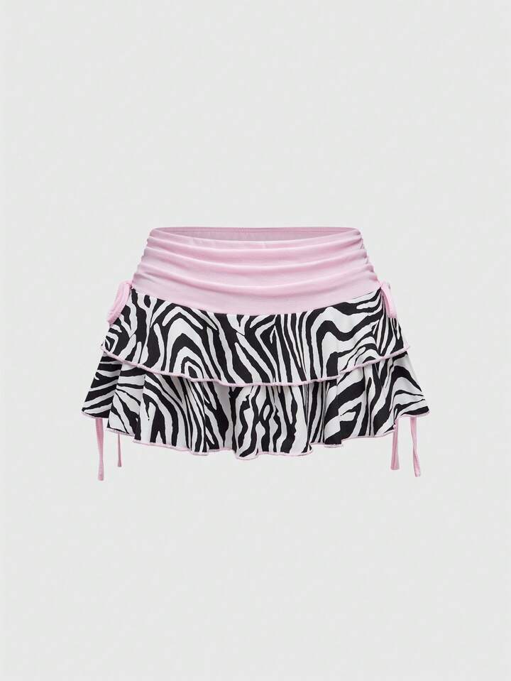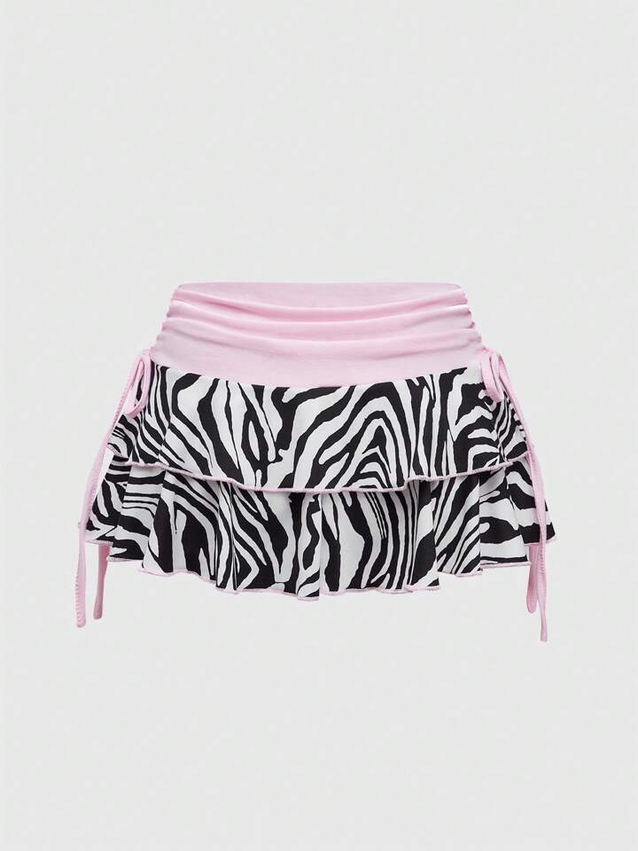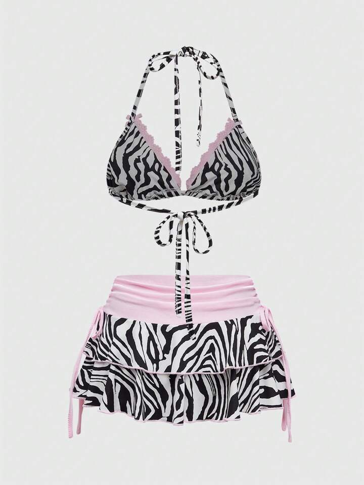 Grunge Punk Set di 2 pezzi con top a triangolo e gonna a vita bassa con stampa integrale a righe zebrate bianche e nere, stile vacanziero in stile Y2K sexy