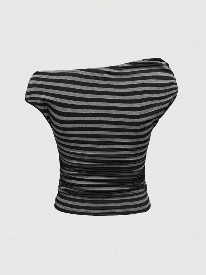 Grunge Punk Maglietta da donna a righe asimmetrica e arricciata, revivalstile vintage dello stile Y2K di Shibuya