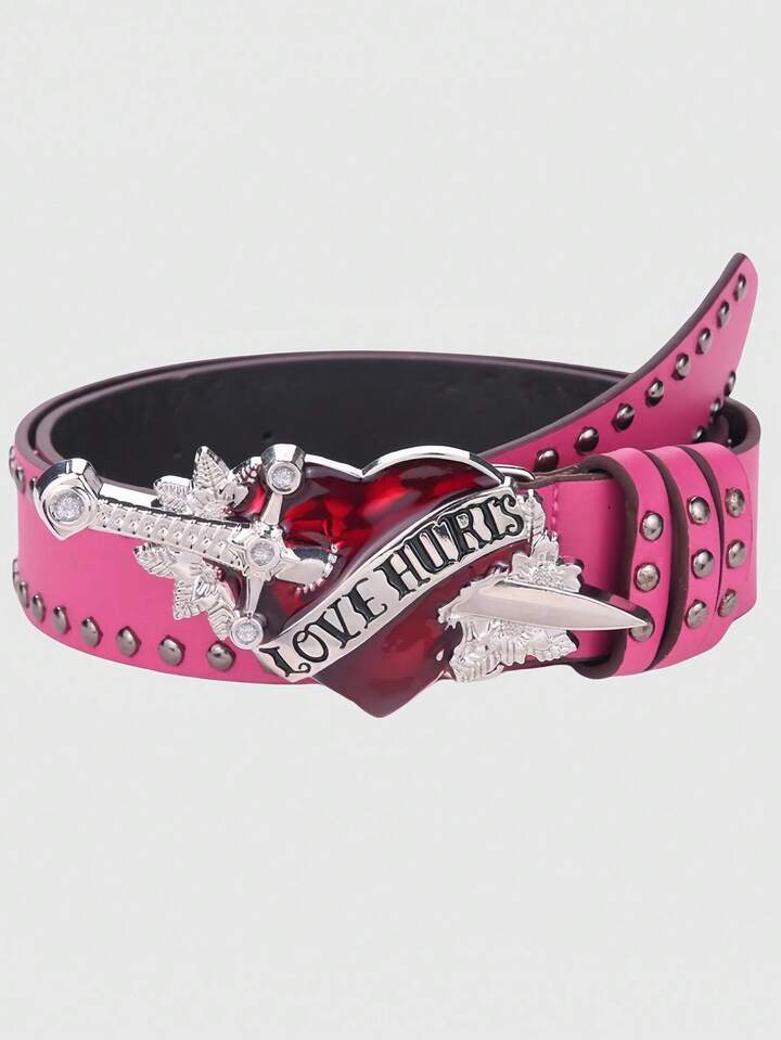 Grunge Punk Cintura Y2K con fibbia a forma di cuore borchiata