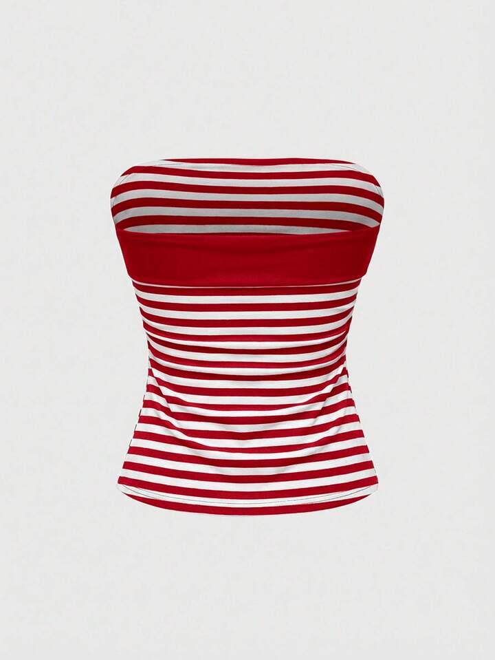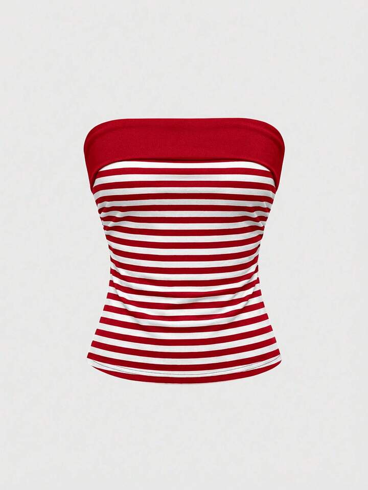 Grunge Punk Canotta corta a righe e patchwork in stile Y2K con orlo a spacco per donne