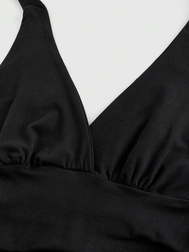 Grunge Punk Top a canottiera nero tinta unita con laccio sulla schiena stile Y2K per donne