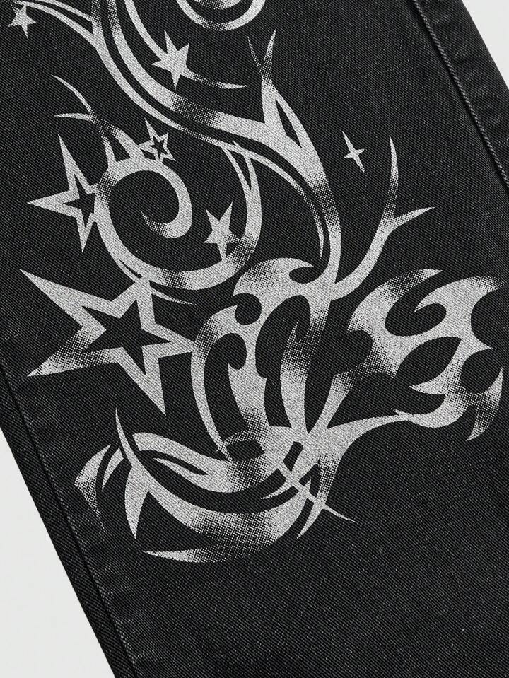 Grunge Punk Jeans da donna con vita ultra bassa, gamba larga e stampa futuristica di Cibersigismo stile Y3K