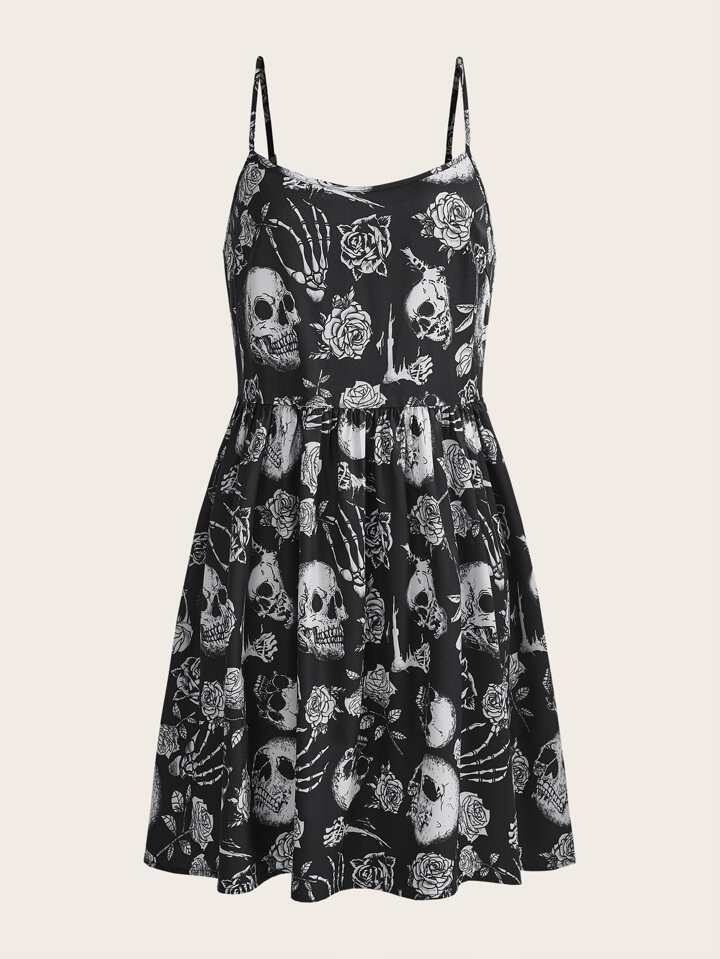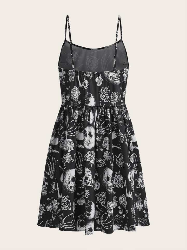 Grunge Abito a canotta con stampa teschio e floreale senza Guanti