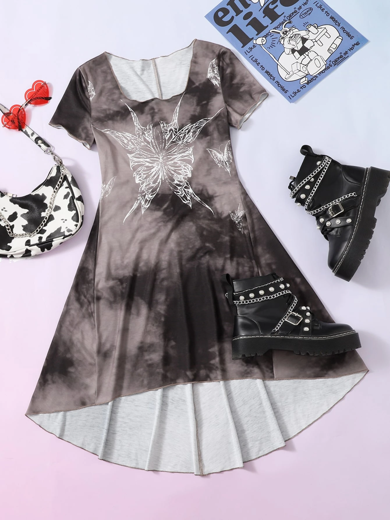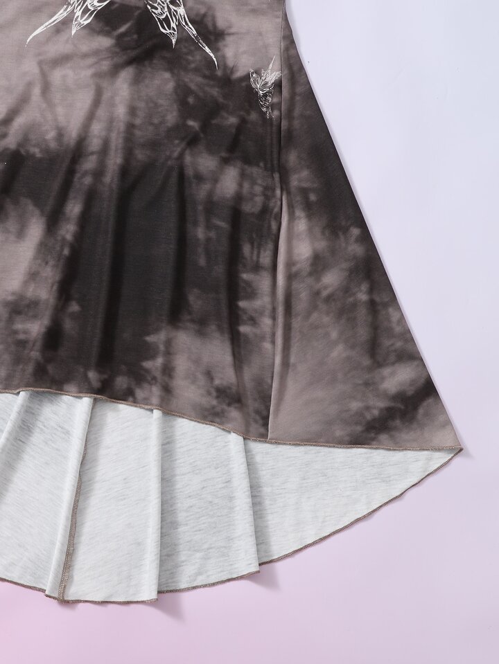 Abiti Grunge tie dye con stampa farfalla girocollo