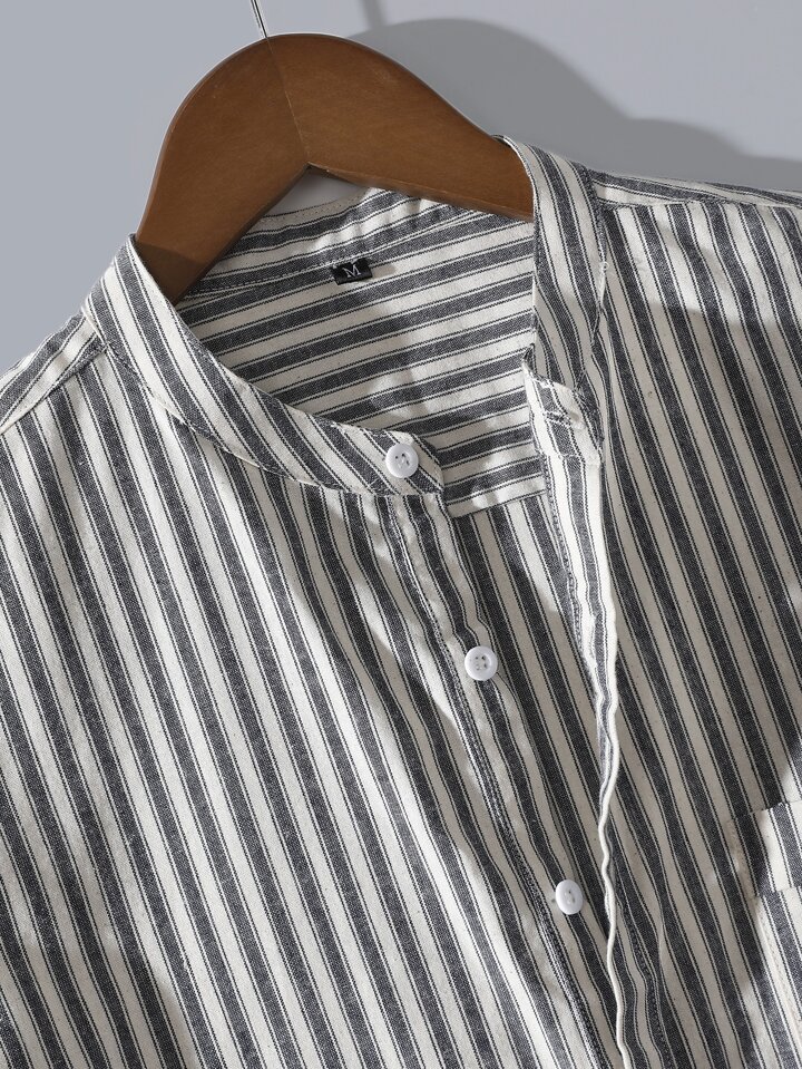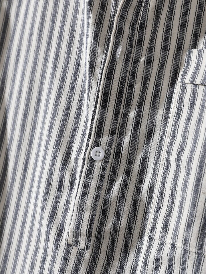 Camicia Da Uomo Con Taschino A Righe E Maniche Corte, 1 Pezzo, Casual, Regalo Per Fidanzato