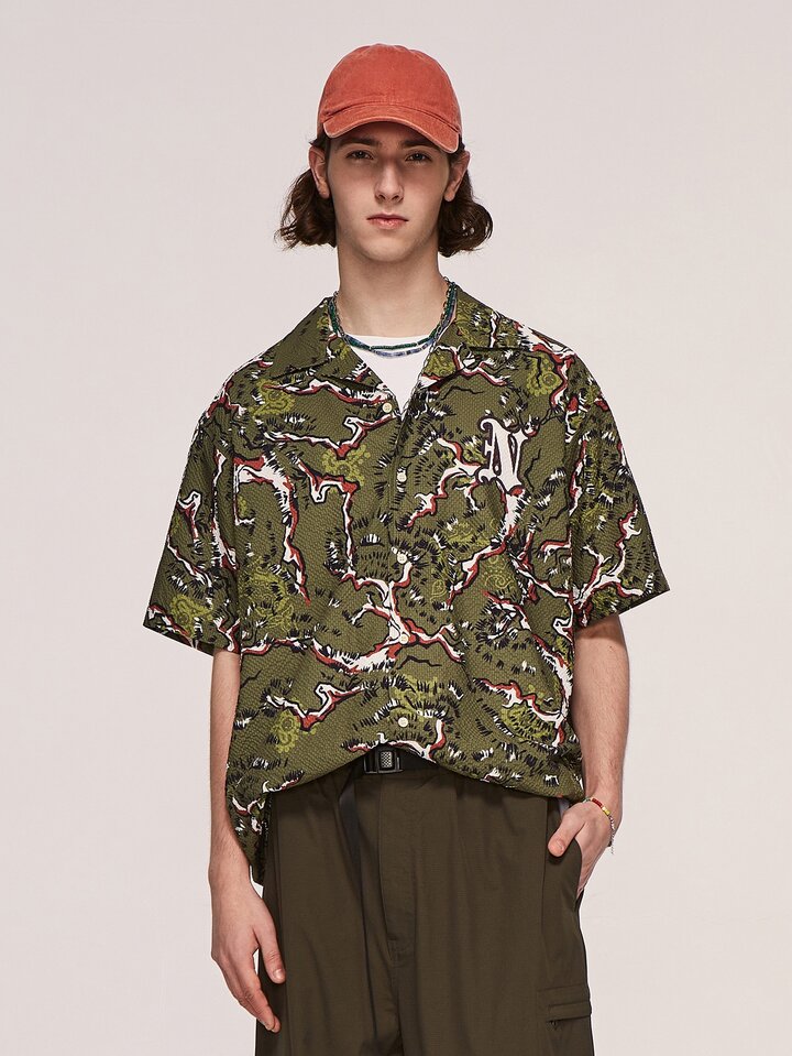 Uomo Camicia stampato all over con bottone frontale