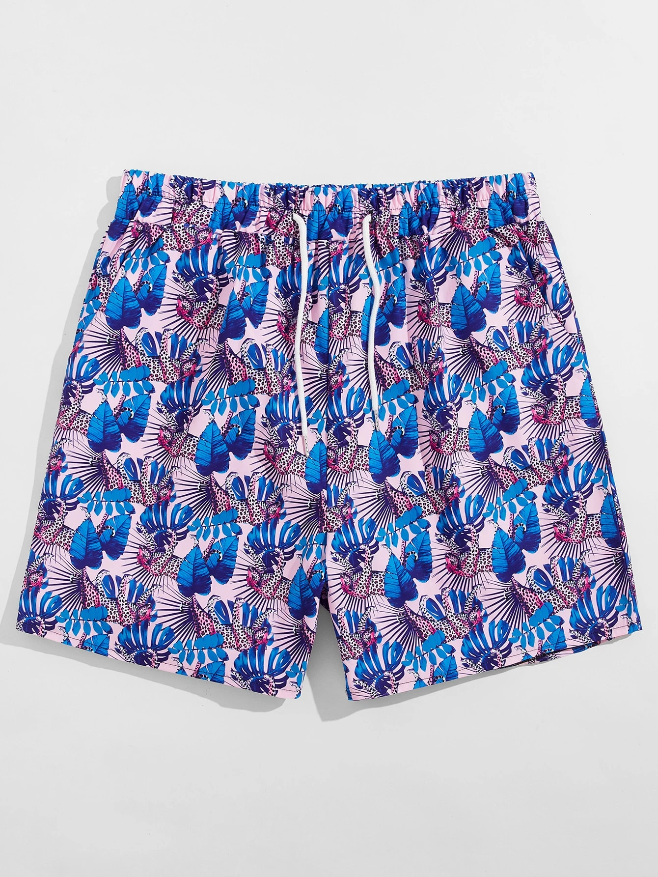 Shorts per ragazzi con stampa animale & foglia con coulisse