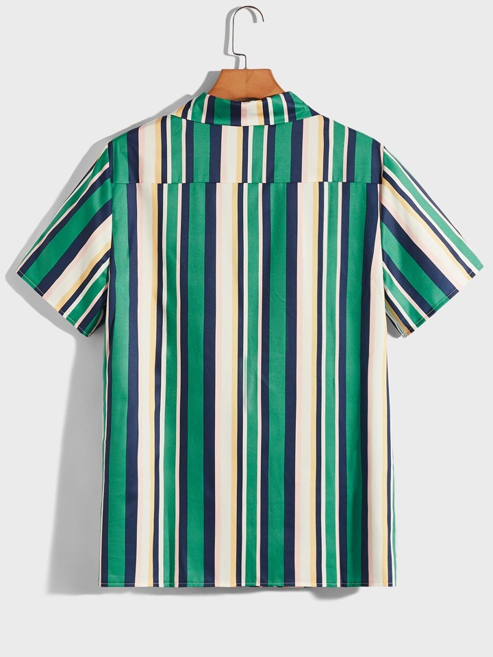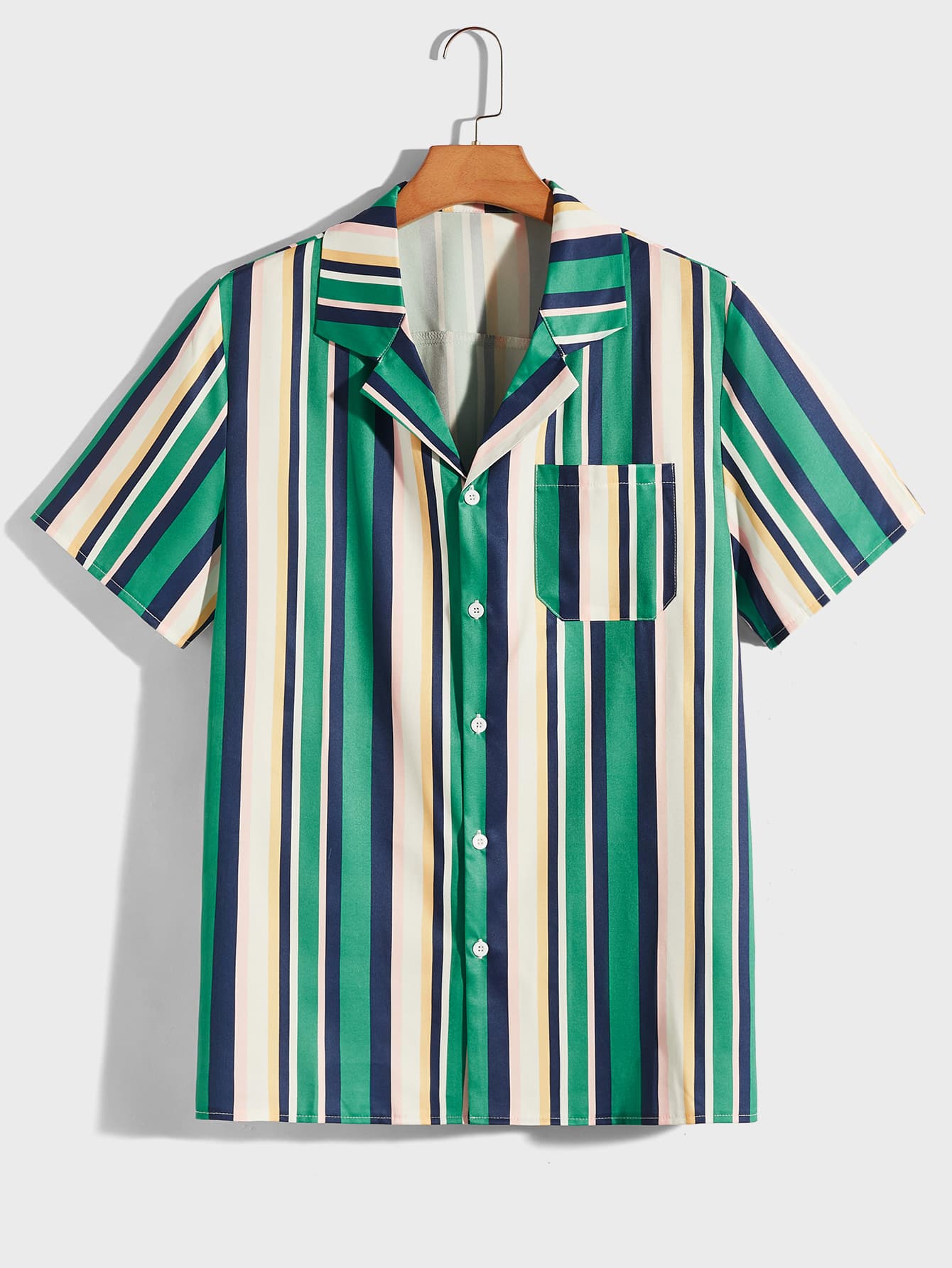 Camicie da uomo Tasca Bottone frontale A strisce Vacanza